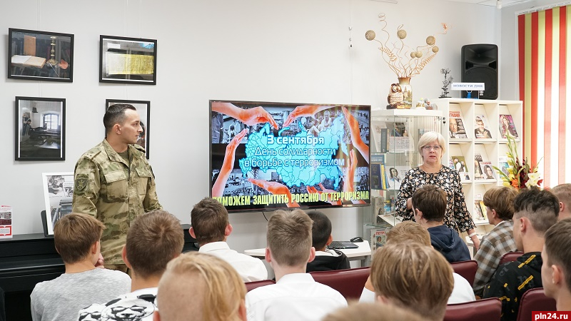 В модельной библиотеке микрорайона Любятово «Библиолюб», в рамках акции «Вместе против террора», военнослужащие управления Росгвардии по Псковской области встретились с учащимися Политехнического колледжа.