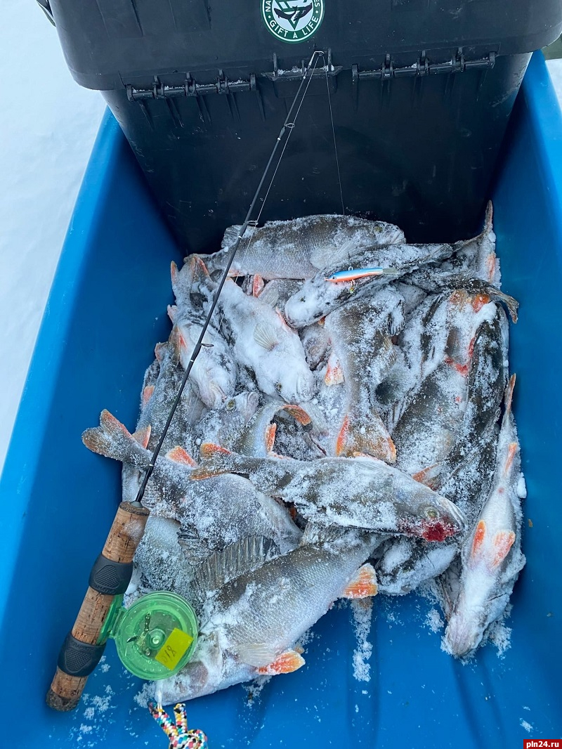 Псковские рыбаки делятся фотографиями улова с зимней рыбалки в Сети. Снимки размещают в тематических группах в социальной сети «ВКонтакте».