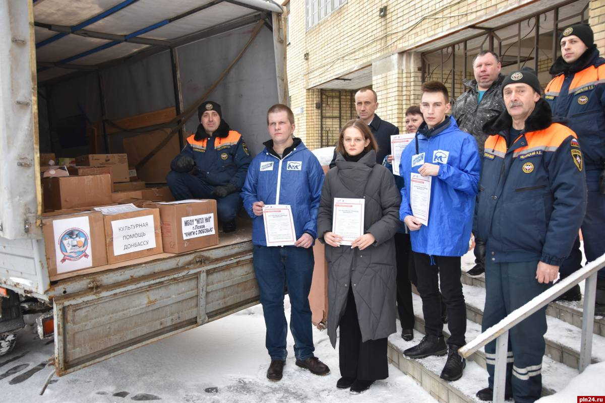 Книги принимали в местных общественных приемных всех муниципалитетов региона. Сегодня книги переданы для отправки в место назначения. В погрузке коробок с книгами приняли участие спасатели аварийно-спасательной службы Пскова из Государственного казенного учреждения Псковской области «Управление обеспечения деятельности в чрезвычайных ситуациях» и сотрудники ГУ МЧС России по Псковской области. Транспорт для перевозки книг в Санкт-Петербург, где будет сформирована общая «посылка» от Псковской, Новгородской, Ленинградской и других областей Северо-Запада, предоставил Алексей Гиацинтов, член общественной палаты Псковской области.
