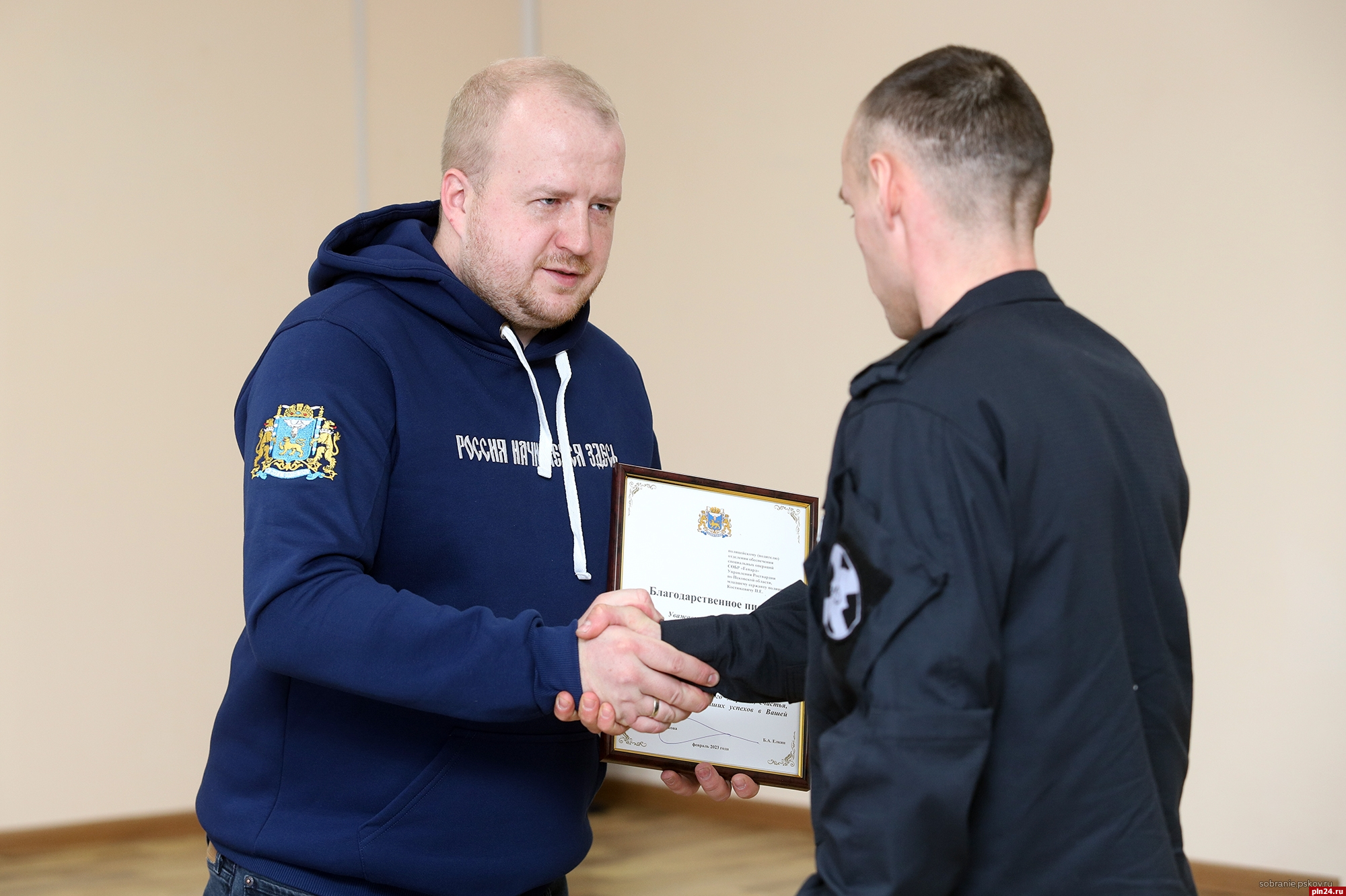 «От лица жителей области благодарю вас за службу, - обратился к сотрудникам СОБР губернатор. - Путь спецподразделения – это сорок командировок на Кавказ, огромное количество успешно выполненных боевых задач, десятки нейтрализованных, обезвреженных, уничтоженных бандитов. Ну и, конечно, с первых дней начала специальной военной операции вы были в первых рядах, на передовой». Глава региона заверил, что правительство Псковской области со совей стороны будет делать всё необходимое, чтобы помогать обеспечивать отряд всем необходимым и поддерживать семьи бойцов.