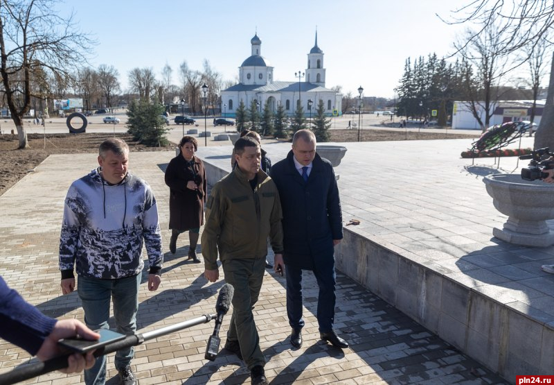 Губернатор Псковской области Михаил Ведерников в пятницу, 7 апреля, вне программы рабочей поездки проинспектировал в Острове несколько объектов: посетил поликлиническое отделение межрайонной больницы и реконструированный сквер Клавы Назаровой.