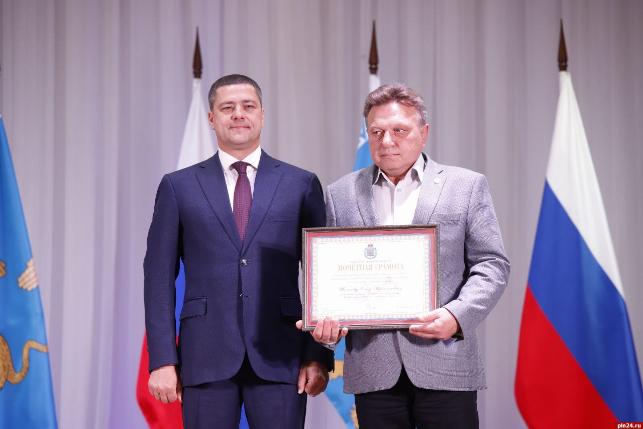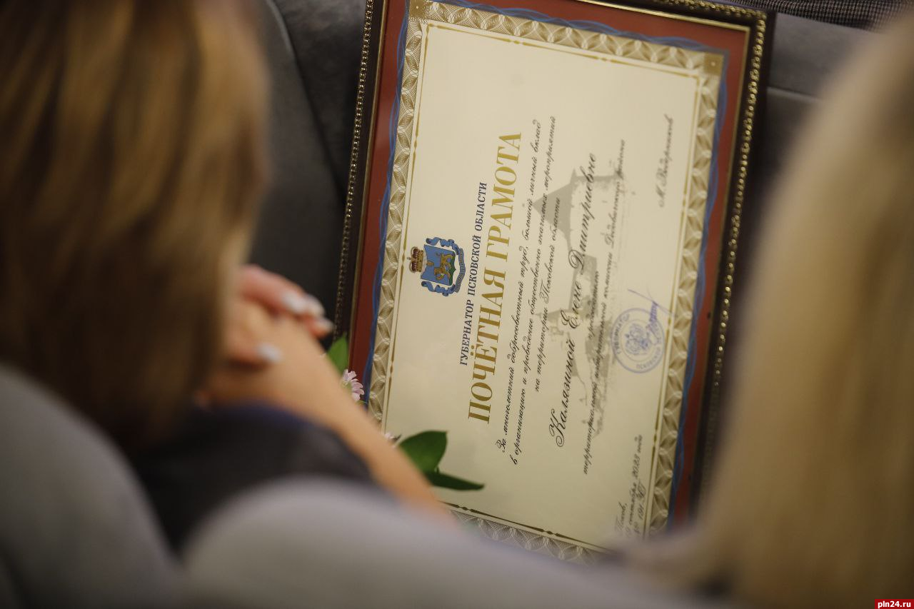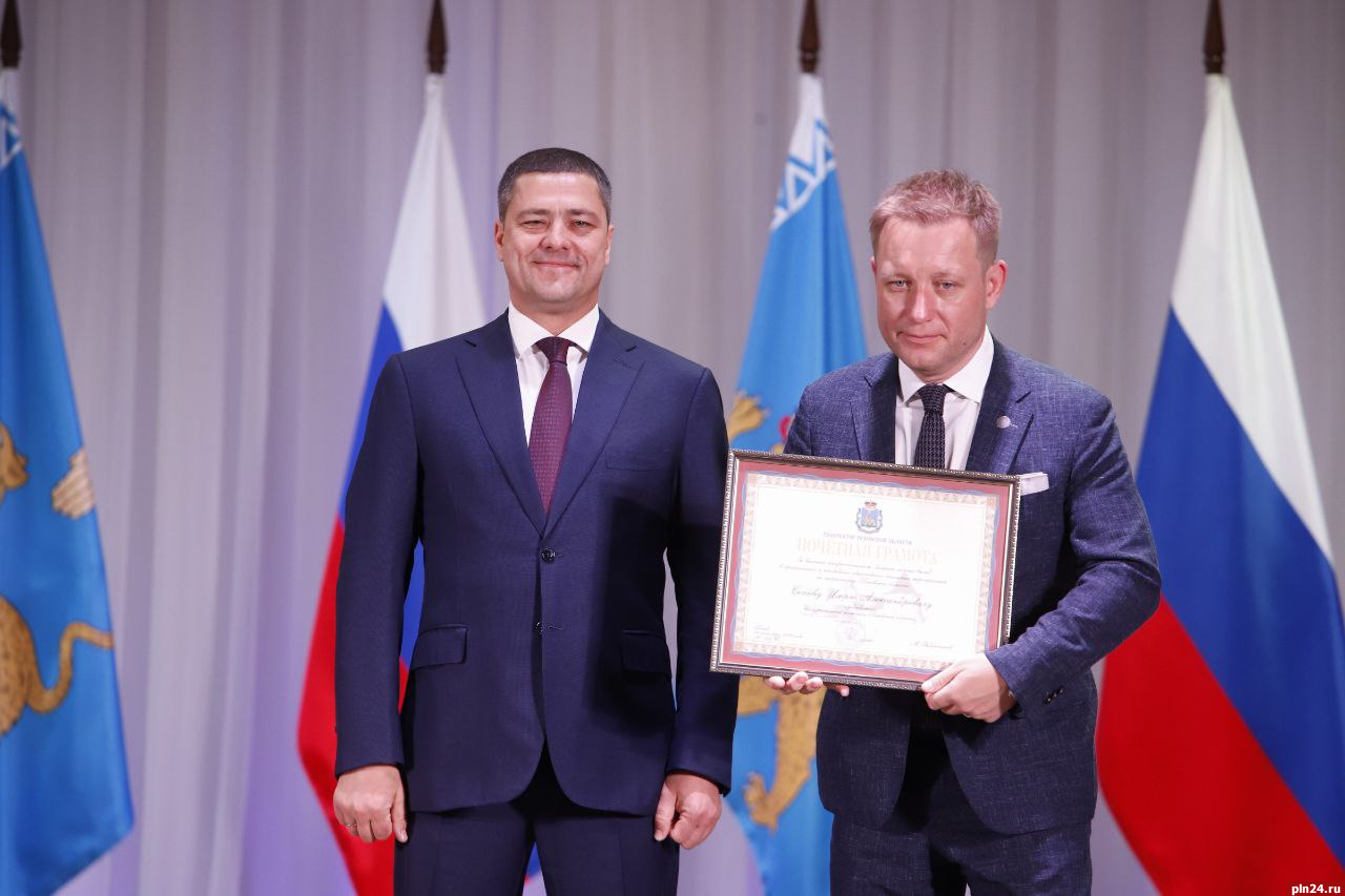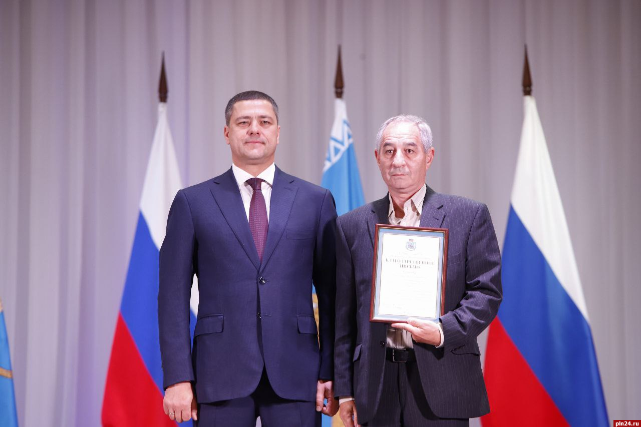 Затем Александр Котов вручил благодарности Псковского областного Собрания депутатов.