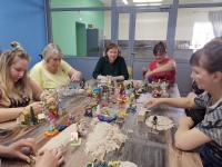 - провести восемь групповых психологических тренингов. Всего было организовано восемь тренингов, которые проходили как на базе офиса Фонда, так и в ПВРах. Психолог с применением метода песочной терапии проводила занятия, направленные на поиск внутренних ресурсов. Взрослые и дети с большим удовольствием создавали свои миры из кинетического песка и разнообразных фигур, размышляли над своими возможностями. Они творчески подходили к поиску источников внутренних сил, которые помогут при реализации личных планов и целей;
