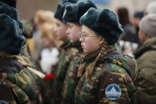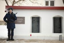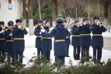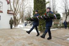 У монумента была отслужена лития, участники мероприятия возложили гирлянду воинской славы и цветы, почтили героев минутой молчания. Завершился митинг торжественным маршем личного состава части и Юнармии.