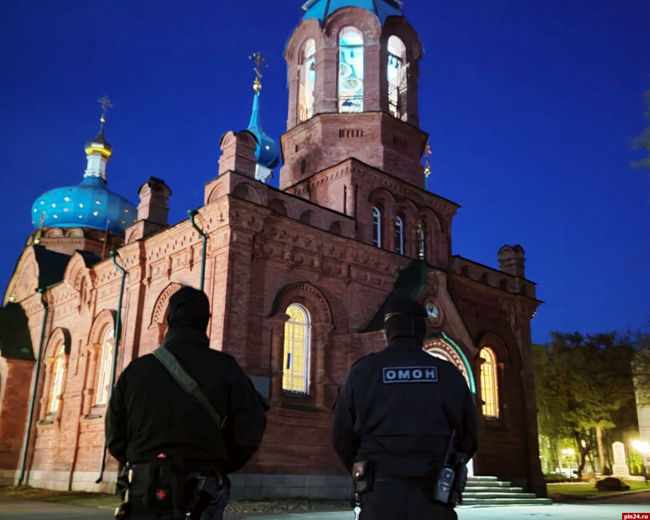 В охране правопорядка и обеспечении безопасности граждан, при проведении богослужений приняли участие сотрудники ОМОН «Кром» и вневедомственной охраны Управления Росгвардии по Псковской области.