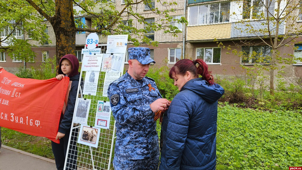 Мероприятие прошло на улице Николая Васильева, на которой расположены административное здание управления Росгвардии по Псковской области и библиотека «БиблиоЛюб».