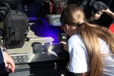 Площадка следственного управления была представлена передвижной криминалистической лабораторией, где у ребят была возможность ознакомиться с криминалистической техникой, применяемой при производстве следственных действий и попробовать себя в роли следователя.