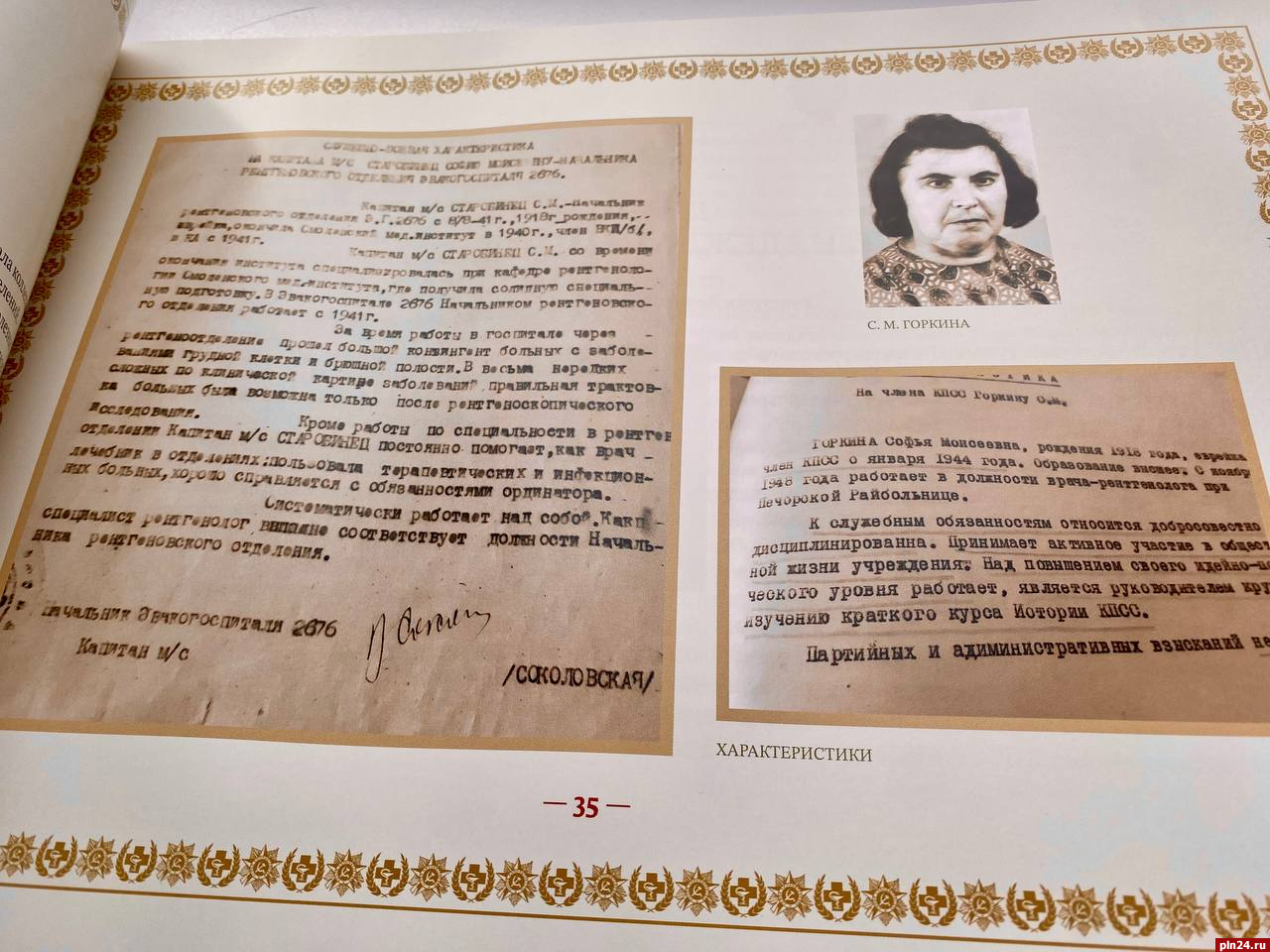 - Всё верно. Книга «Летопись псковской медицины» о медиках-фронтовиках писалась в течение двух лет, но задумана была давно. На фронтах ведь воевали не только лётчики и сапёры, но и те, кого называют «людьми в белых халатах»: врачи, фельдшеры, медсестры, санитары, водители и многие другие люди. Все они внесли колоссальный вклад в Победу. Несколько лет я работал с архивами больницы, областного военкомата, с семейными архивами коллег, искал информацию в интернете, изучал документы о сотрудниках, которые принимали участие в Великой Отечественной войне в составе действующей армии, военных госпиталях, партизанских формированиях. В «Летописи» собраны все люди, которые отвоевали и после пришли работать в областную больницу. Хирурги, терапевты, медсестры и многие другие, даже сантехник один нашелся - с 12 лет был партизаном, получил медаль «За отвагу». Это книга биографического плана, где кратко описан боевой и дальнейший пути, перечислены награды медицинских работников, приведены найденные документы, в том числе, наградные, фотографии.