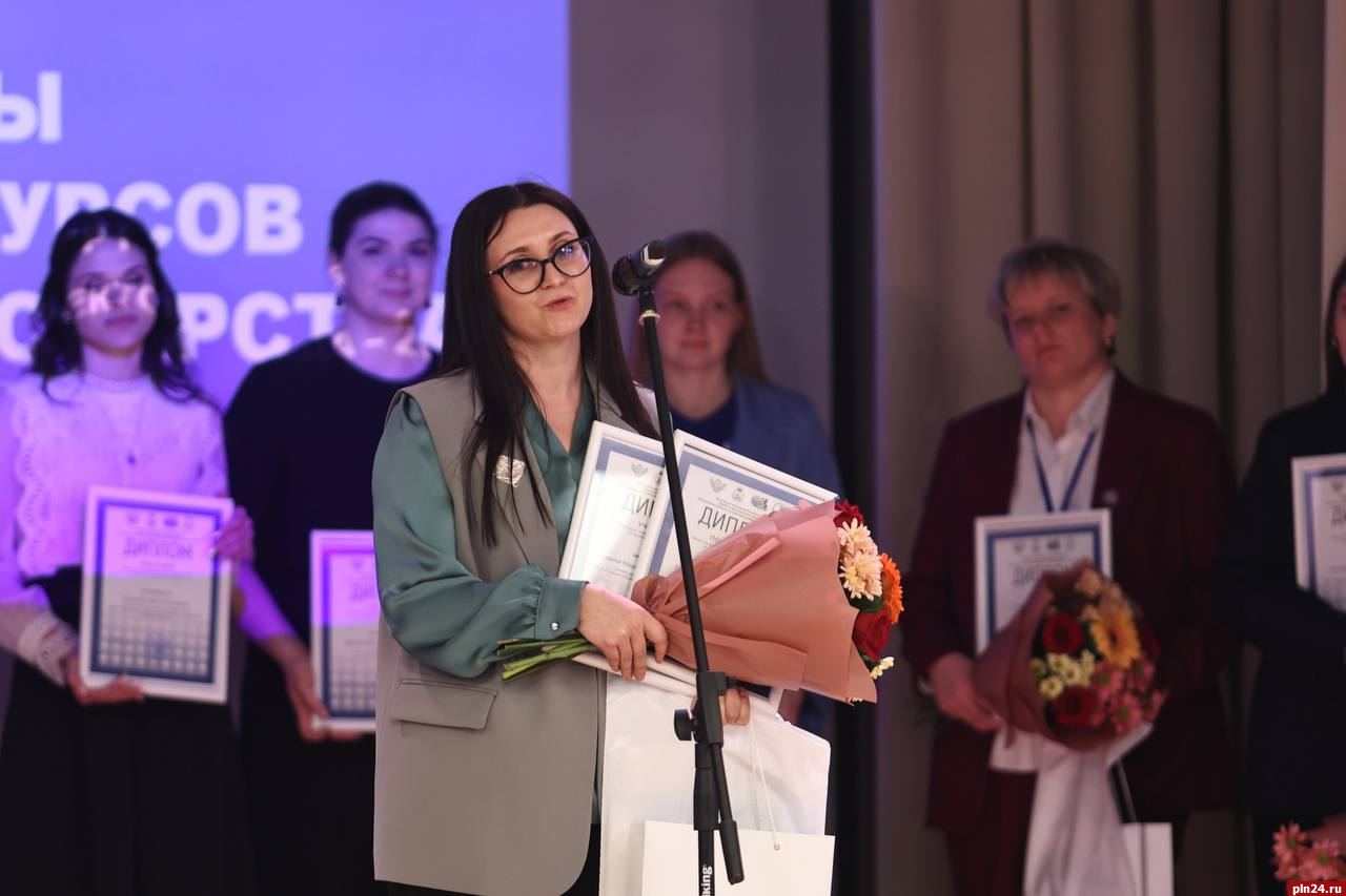 Диплом победителя областного этапа конкурса был торжественно вручен Марианне Савиной - учителю русского языка и литературы средней школы № 2 города Пскова.