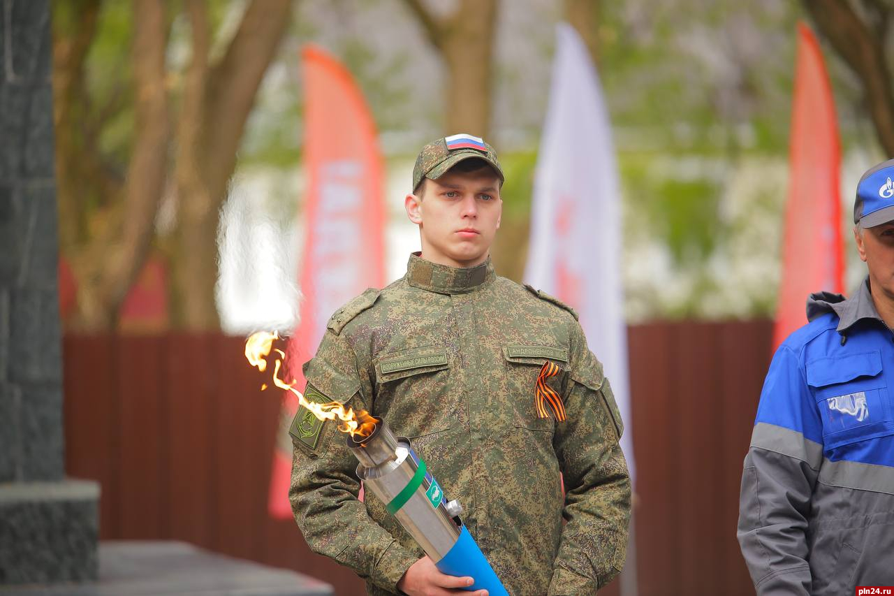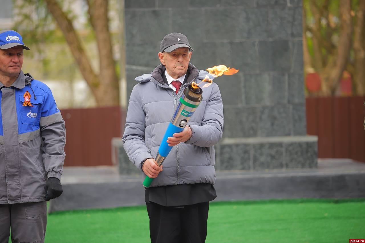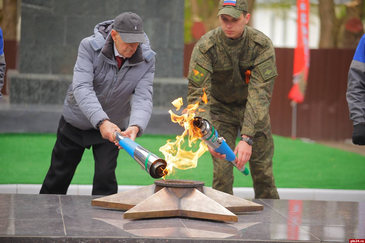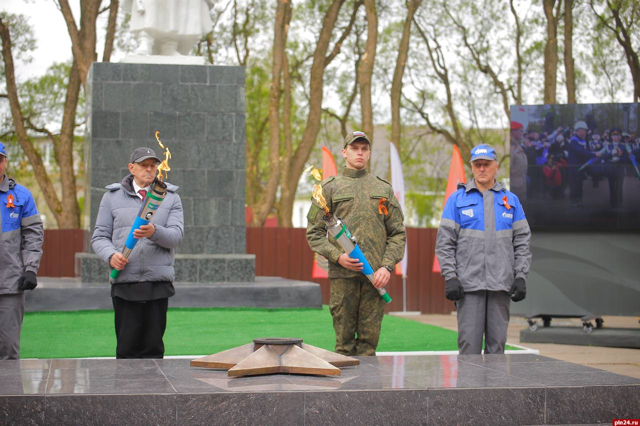 Ранее торжественная церемония зажжения Вечного огня состоялась в деревне Ершово Псковского района.
