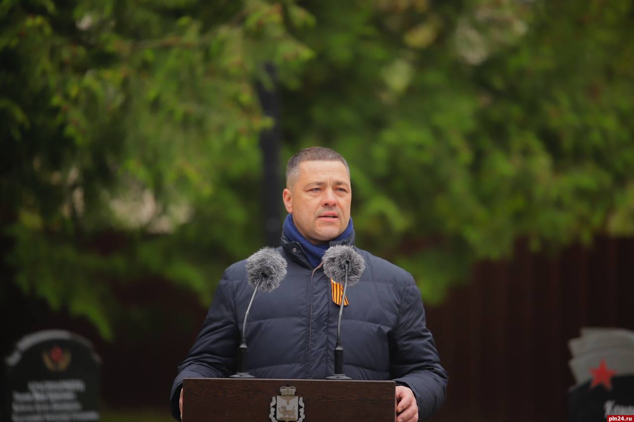 Череду торжественных речей открыл губернатор Псковской области Михаил Ведерников. Он акцентировал внимание на том, что почти четверть жителей округа погибли либо защищая и освобождая родную землю, либо сгинули в руках фашистов. Именно поэтому нужно чтить и передавать память о тех, кто защищал Отечество, не считаясь с жизнью.