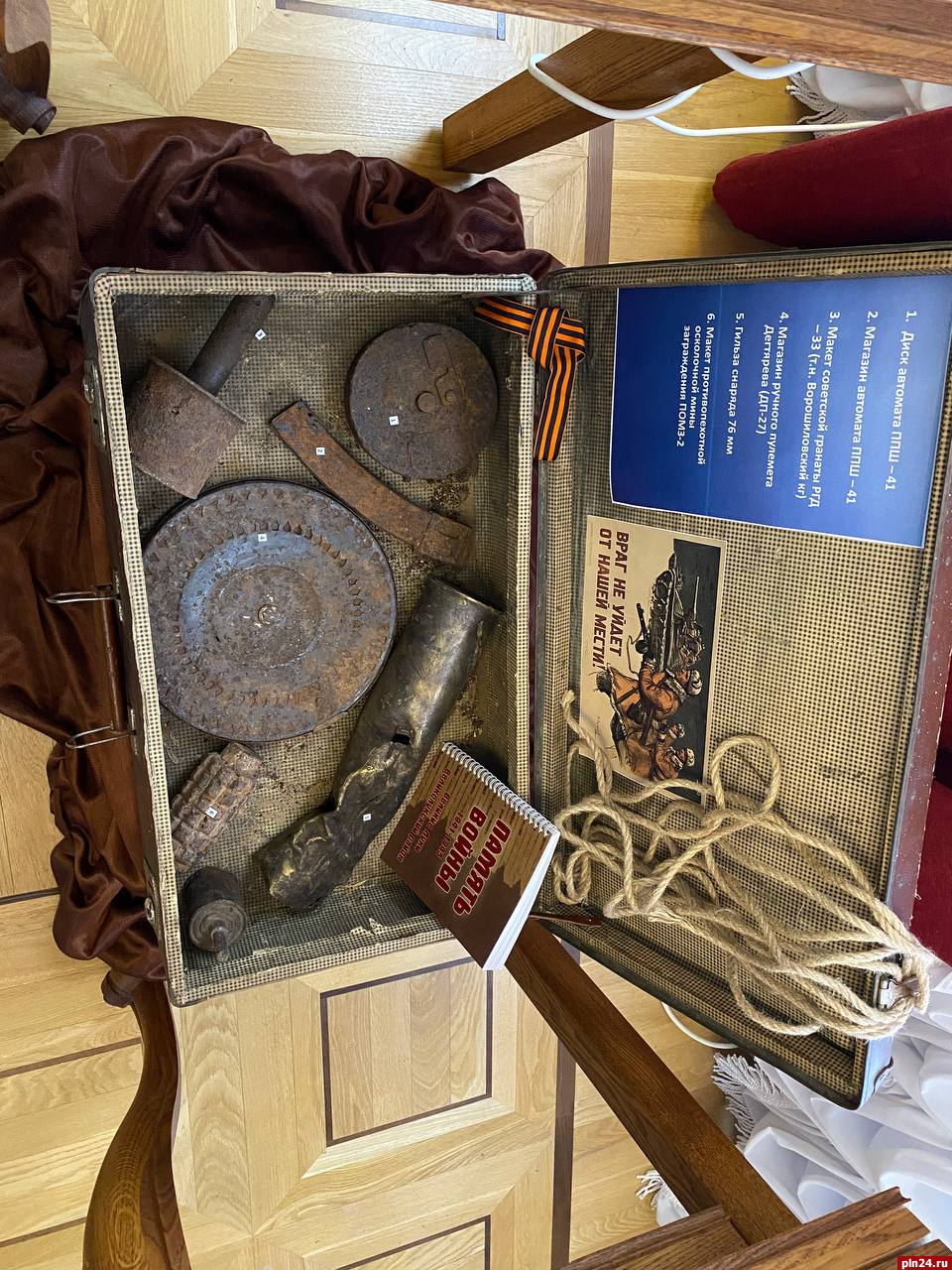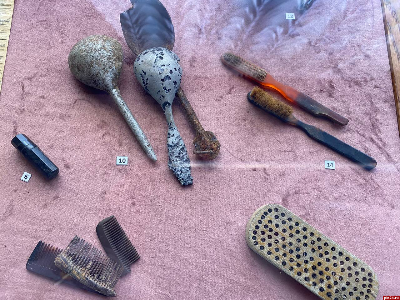 Это вещи, найденные поисковиками в Великолукском, Невельском и Локнянском районах. На многих из них виднеется земля, глина, некоторые повреждены огнём. В витринах можно увидеть предметы быта - расчески, ложки, зубные щётки, кружки. По соседству располагаются другие спутники фронтовой жизни - каски, медали, смертный медальон. На выставке представлен довольно редко встречающийся в экспозициях предмет - стальной нагрудник, который использовали штурмовые бригады, в том числе и те, которые сражались за Ступинскую высоту.