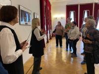 Затем гости отправились в главный усадебный дом, где регулярно проводятся временные выставки. Новая экспозиция о Великой Отечественной войне расположилась на втором этаже. Предполагалось, что она займёт всего один зал, в XIX веке выполнявший функции библиотеки, но в итоге потребовалось задействовать ещё два - экспонатов набралось немало.