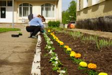 Сотрудники администрации района украсили прилегающую к зданию территорию яркими однолетниками и высадили георгины, которые будут цвести до самых заморозков.