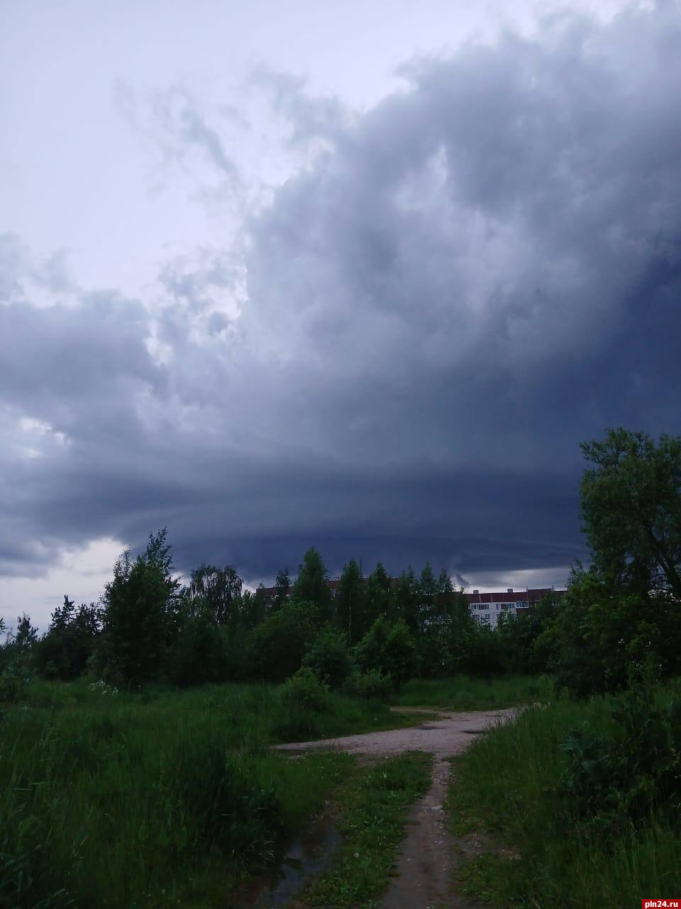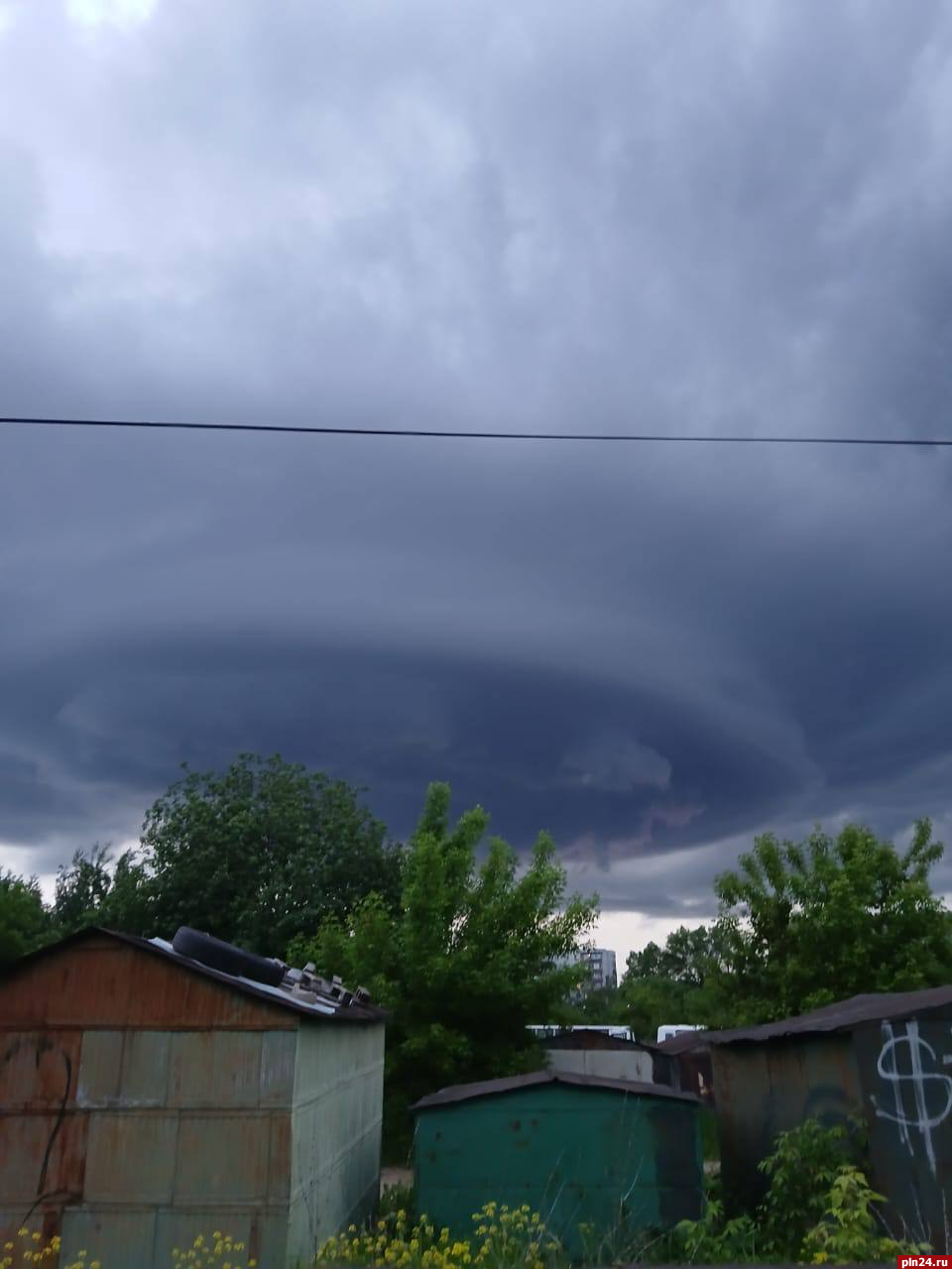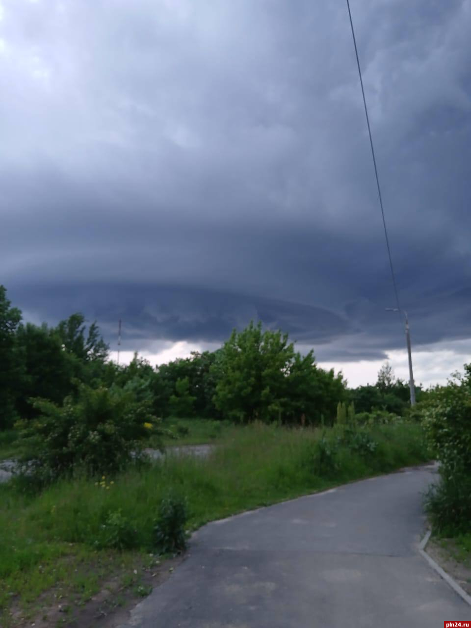 Грозовая туча необычной формы нависла над Псковом. Фотографии прислали в редакцию Псковской Ленты Новостей местные жители.