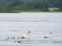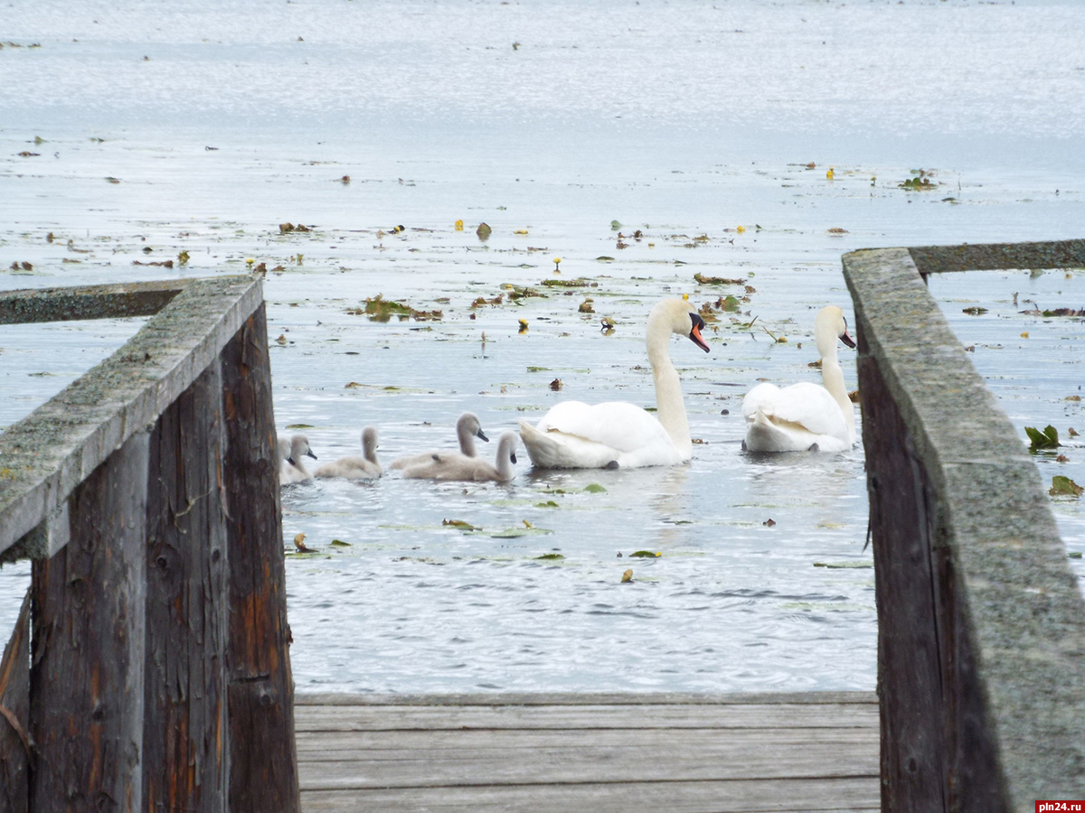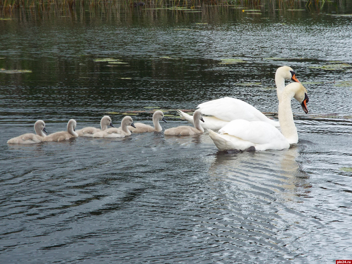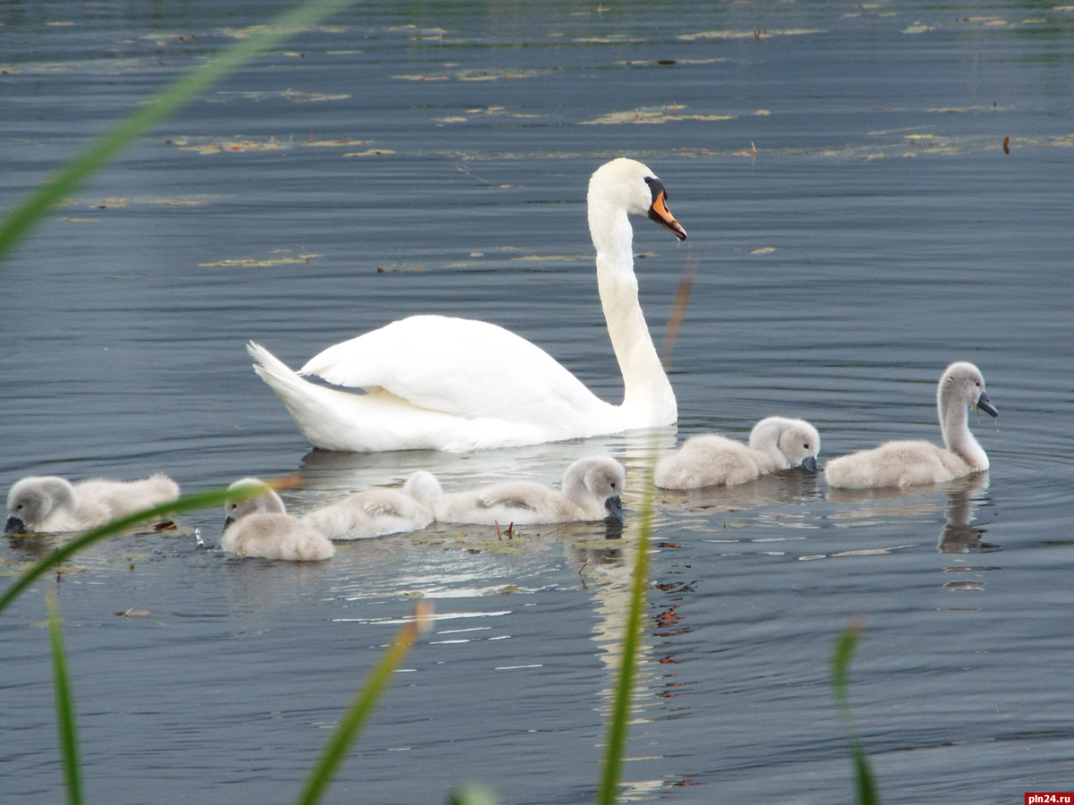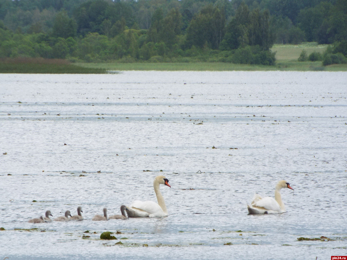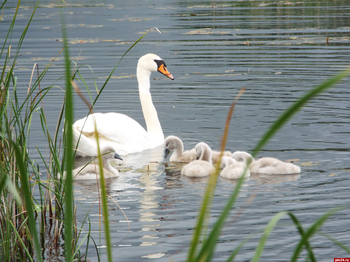 Фотографии первых в этом году птенцов лебедя-шипуна в Государственном музее-заповеднике А.С. Пушкина «Михайловское» сегодня, 17 июня, удалось сделать сотруднику Пушкинского заповедника Алексею Михайлову, сообщает служба информации музея. Снимки шестерых трогательных пушистиков на первой прогулке с родителями Алексей Михайлов разместил на своей странице в социальной сети, отметив, что сделаны кадры на озере Белогуль (иначе — Белогули) на территории музея-заповедника.