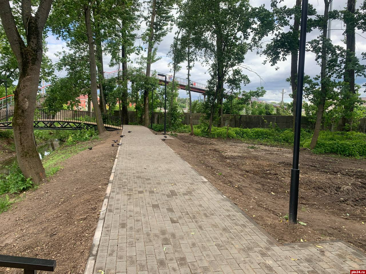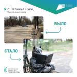 Благодаря программе «Формирование комфортной городской среды» он преобразился, все предусмотренные проектом работы уже завершены. В обновленном пространстве размещены малые архитектурные формы с символикой Великих Лук. Для безопасности участников дорожного движения установлены бетонные полусферы, отделяющие пешеходную зону от проезжей части. Также появились современные урны для мусора и скамейки.