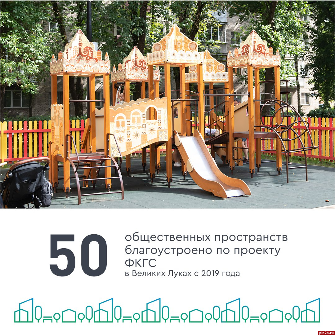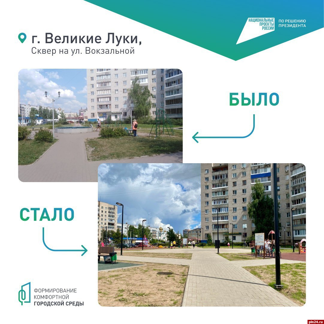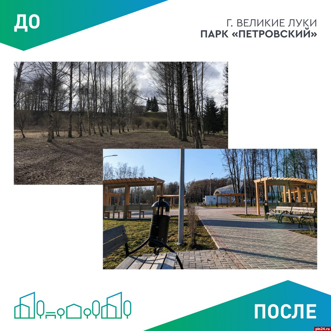 Так, в прошлом году в городе обновили сквер напротив магазина «Апельсин», который является центром притяжения многих великолучан, проживающих в микрорайоне «Дружба». Там установили новый пешеходный фонтан, современный игровой комплекс для самых маленьких жителей города, заменили устаревшие скамейки, урны, покрытия тротуаров, высадили деревья.