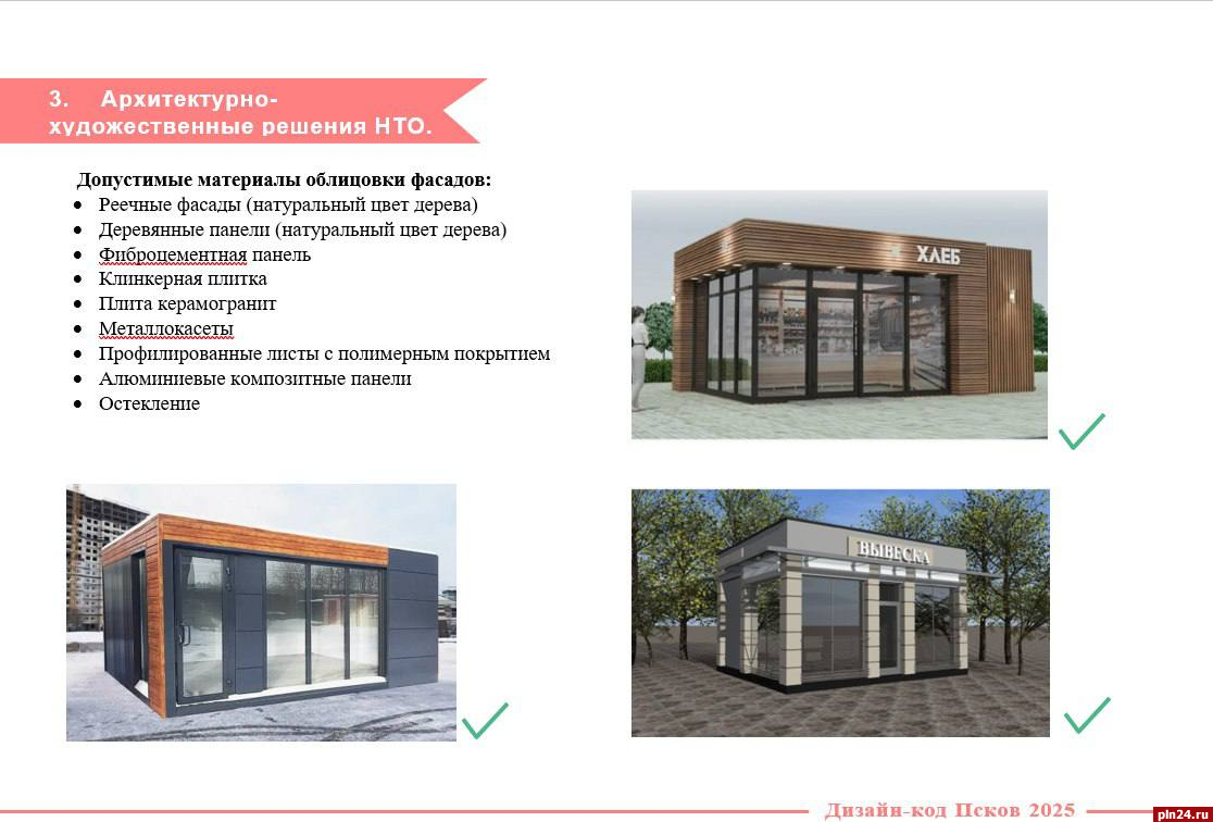 Дизайн-код для нестационарных торговых объектов (НТО) единогласно поддержал градостроительный совет в Пскове. Об этом сообщил глава города Пскова Борис Елкин в своём Telegram-канале.