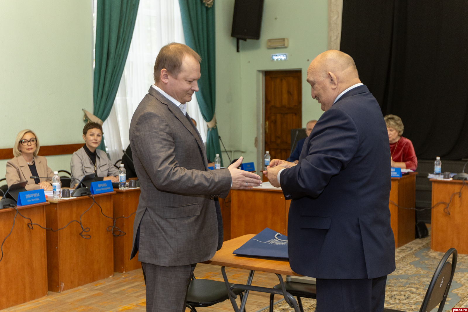 Сегодняшняя сессия началась с торжественного события. Победившему на довыборах депутата по округу №3 Антону Морозу вручили удостоверение депутата Псковской городской Думы.