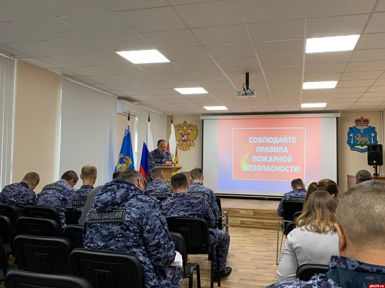 В рамках подготовки к осенне-зимнему пожароопасному периоду начальник инспекции пожарной безопасности Росгвардии по Псковской области 30 сентября с личным составом провел занятие по теме: «Требования нормативно-правовых актов по пожарной безопасности», сообщили Псковской Ленте Новостей в пресс-службе управления.