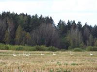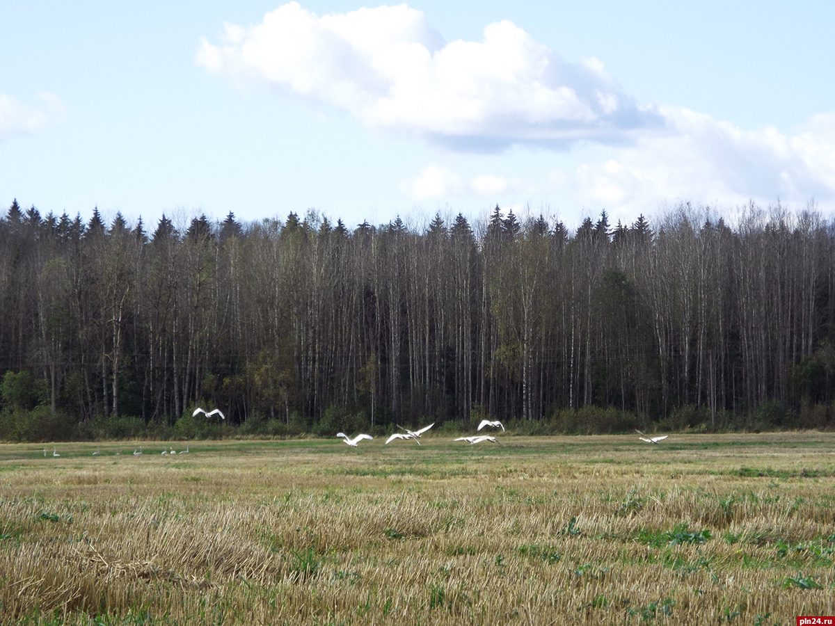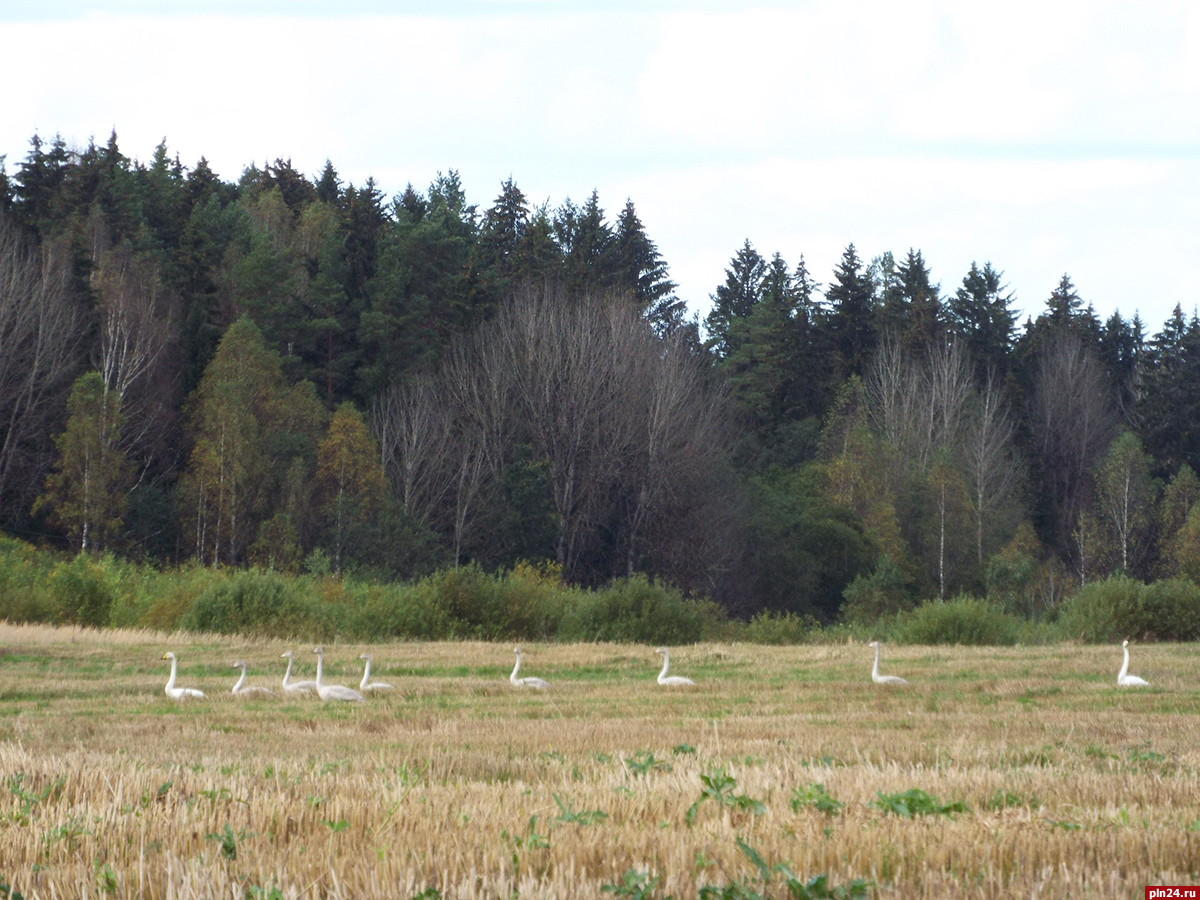 Лебеди собираются в стаи перед отлётом к местам зимовья — такие картины заснял близ музея-усадьбы Осиповых и Вульфов «Тригорское» в составе Государственного Пушкинского Заповедника сотрудник музея Алексей Михайлов. Фотографии он выложил на своей странице в социальной сети ВКонтакте, озаглавив публикацию «Лебединый привал в Тригорском».