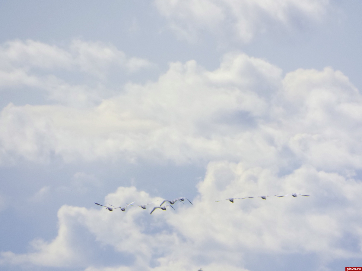 Путь в тёплые края для лебедей-кликунов заканчивается на заливах Чёрного и Каспийского морей, поясняет Всеволод Курбатов, а вот лебеди-шипуны, которые также во множестве обитают в «Михайловском» и вокруг него, летят дальше, в Северную Африку и даже в Иран. «Домой птицы возвращаются в конце марта — в начале апреля, когда реки и озёра ещё окончательно не освободились от ледового плена», — читаем в книге «Животный мир Пушкинского Заповедника».