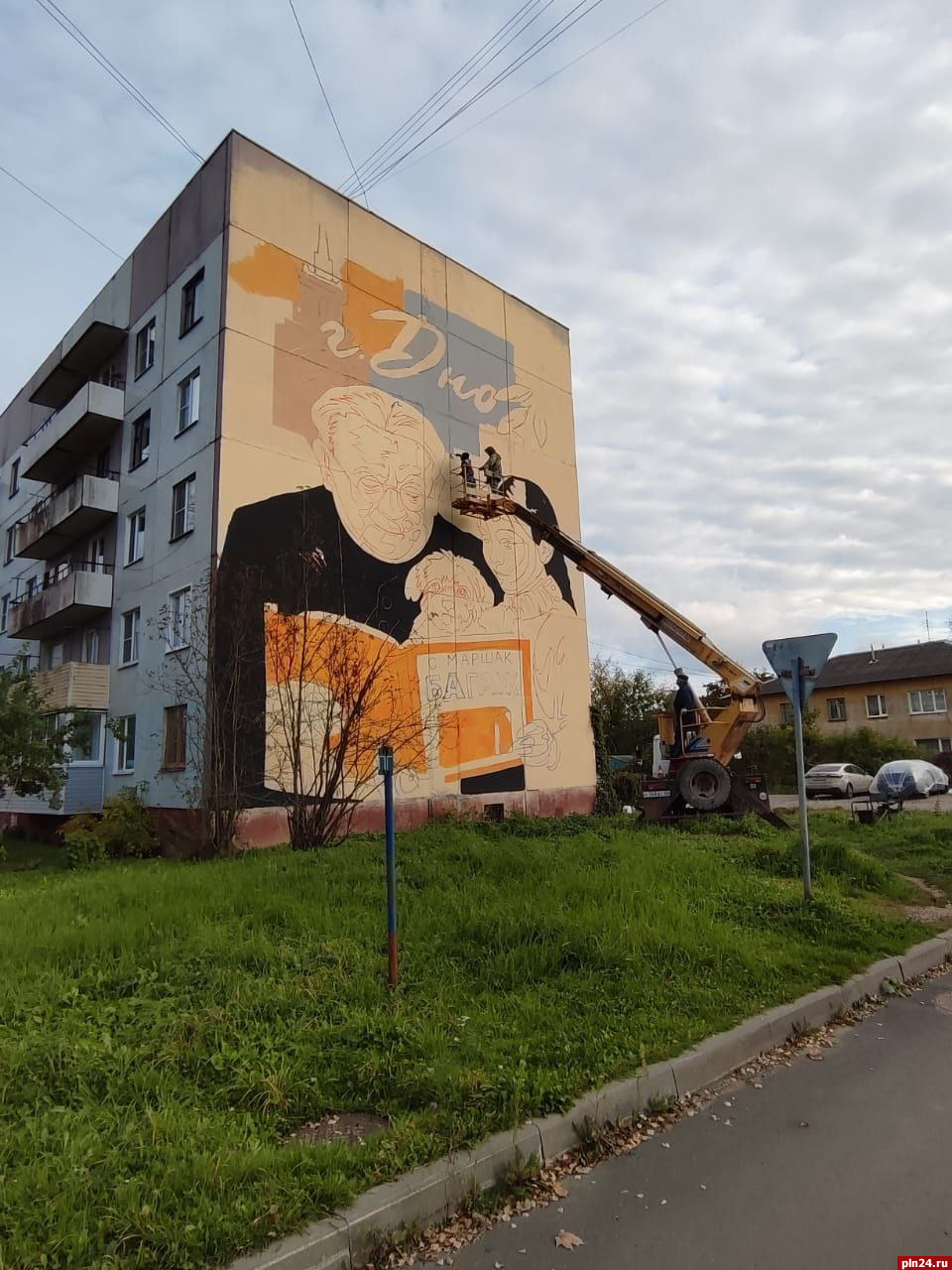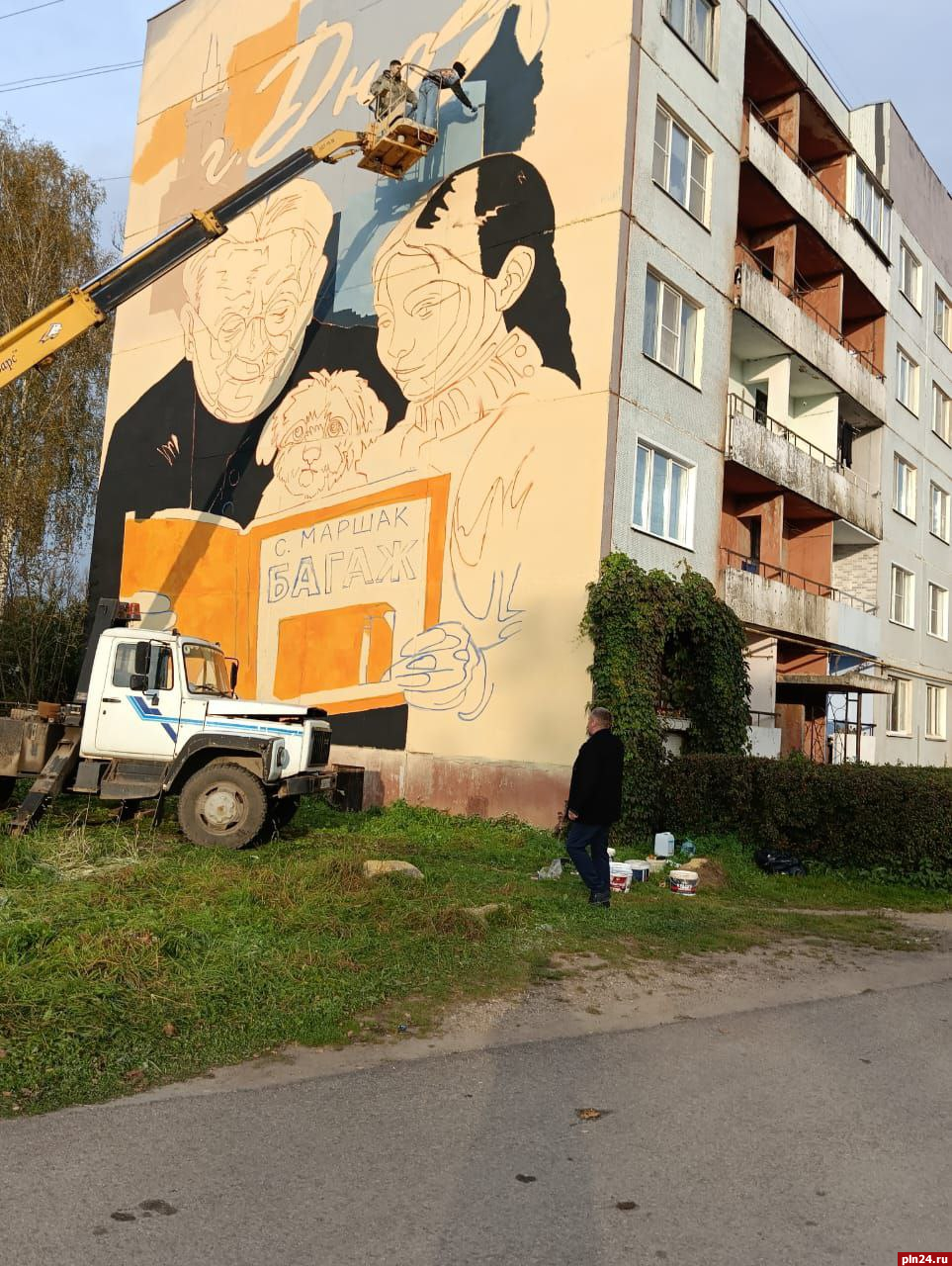 «На доме 12 на улице Дзержинского рисуют мурал. Работы выполняются в рамках реализации проекта Территориального общественного самоуправления - одного из победителей регионального конкурса. Убедился, что изображение будет впечатляющим. Именно эту картину для мурала выбрали жители дома. Наверное, не надо объяснять, как выдающийся советский поэт Самуил Маршак связан с нашим городом. Его бессмертное стихотворение "Багаж", где упоминается станция Дно, знает каждый», - сообщил Владимир Цветков.