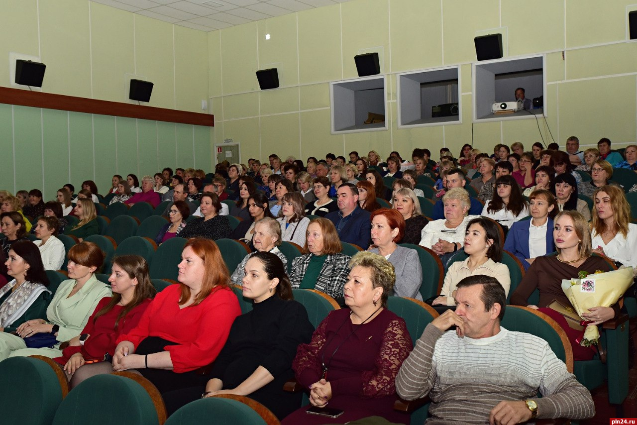 С приветственным словом и поздравлениями к присутствующим в зале ветеранам педагогического труда, руководителям образовательных учреждений, учителям школ и педагогам дополнительного образования обратилась заместитель главы администрации Островского района Лариса Иванова.