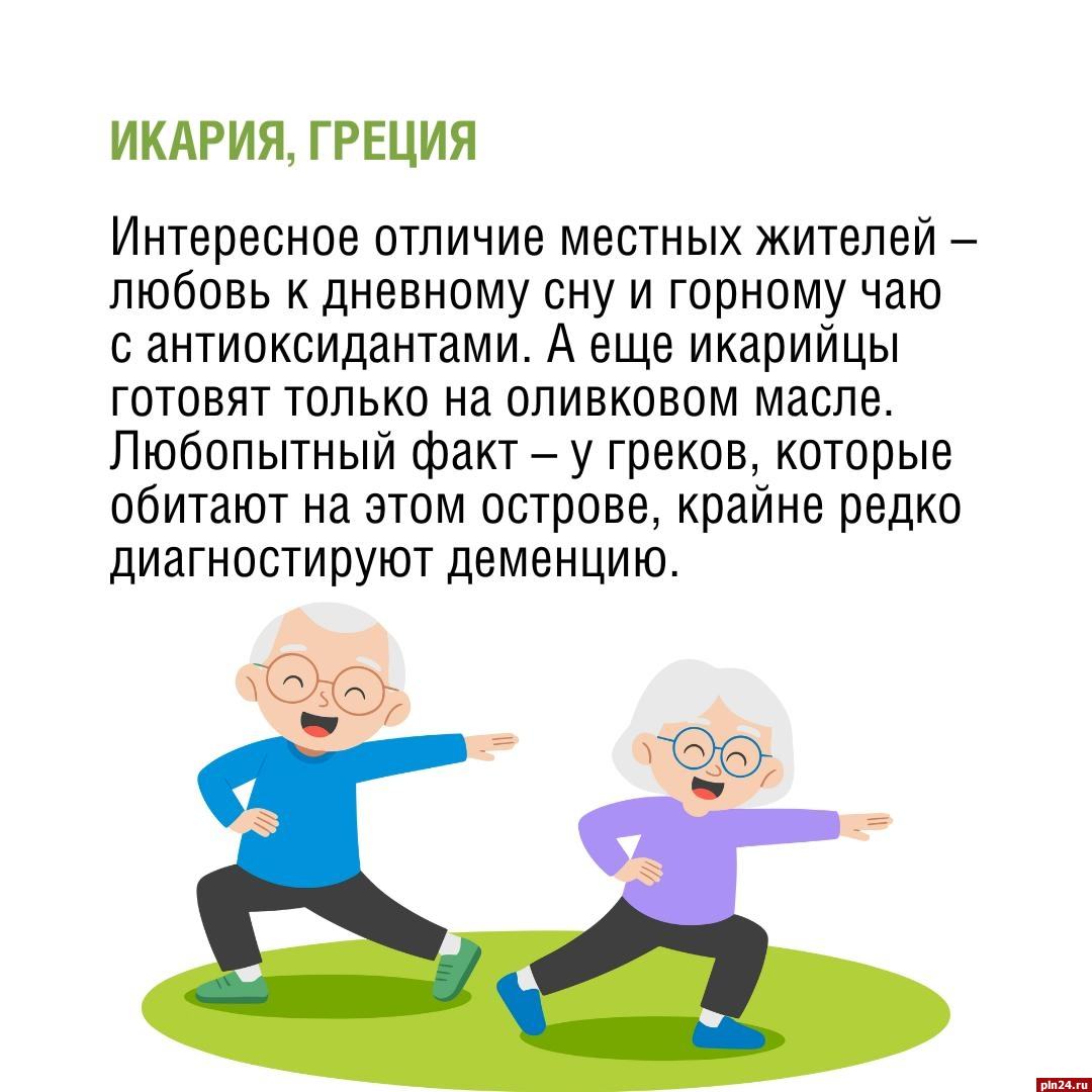 Секреты долголетия разных стран опубликовало управление Федеральной службы по надзору в сфере защиты прав потребителей и благополучия человека по Псковской области 5 октября в своей группе в соцсети «ВКонтакте».