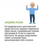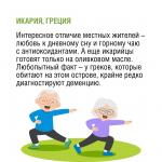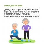 «К воскресному завтраку предлагаем приятный контент! А вы знали, что на нашей планете есть так называемые «голубые зоны» – регионы, богатые рекордным количеством долгожителей. Ученые изучили их образ жизни и выделили общие черты: умеренное, но сбалансированное питание, богатое растительной пищей; активный и физически подвижный образ жизни; имеют цель в жизни, чувствуют себя частью сплоченного сообщества», - сообщили в Роспотребнадзоре.