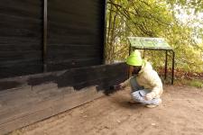 Добровольцы убрали опавшую листву, самосевные всходы клёна, покрасили перила, беседки и основания информационных стендов.