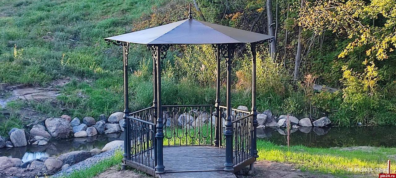 Единственный момент: одно из красивых архитектурных сооружений - кованую беседку на берегу реки Малый Удрай - пришлось перенести в часть парка на другой стороне реки. Честно говоря, при проектировании мы не учли наличие инженерных семей в месте расположения беседки, поэтому в целях безопасности для нее был выбран другой участок.