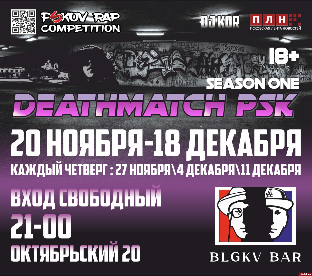 Pskov Rap Competition приглашает исполнителей проявить себя в седьмом сезоне баттлов в новом формате DeathMatch PSK, сообщили Псковской Ленте Новостей организаторы.