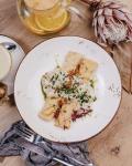 Особого внимания заслуживают фирменные блюда — тост бриошь с лососем или креветкой, ролл из омлета с лососем и хрустящие цукини с красной рыбой и голландским соусом.