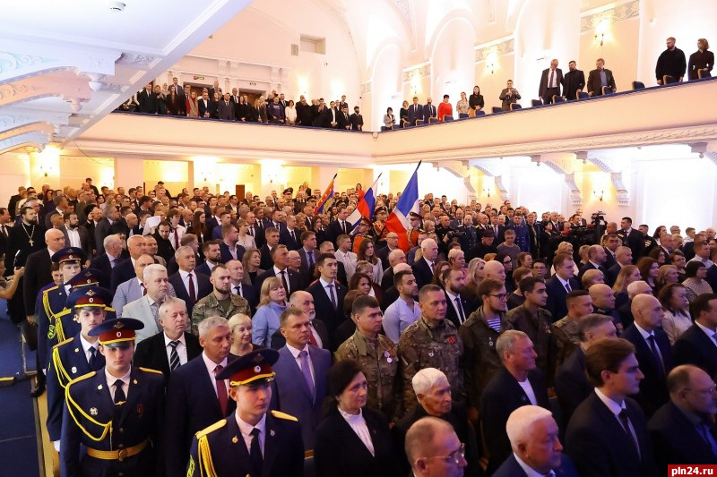 Торжественная церемония состоялась во вторник, 14 октября, в концертном зале филармонии имени А. С. Аренского. В мероприятии приняли участие представители федеральных и региональных органов власти, муниципальных округов, предприятий, силовых структур, общественники, работники социально значимых учреждений, участники СВО, почетные граждане, молодежь. От Псковской области на церемонии присутствовала первый заместитель губернатора Вера Емельянова.