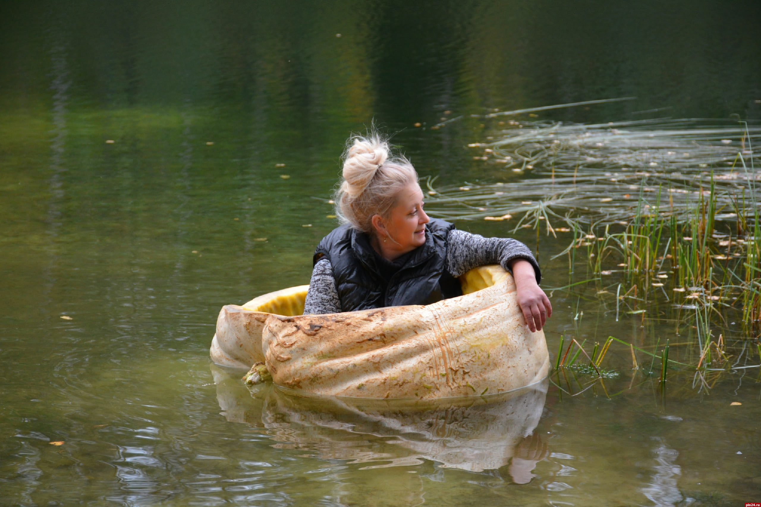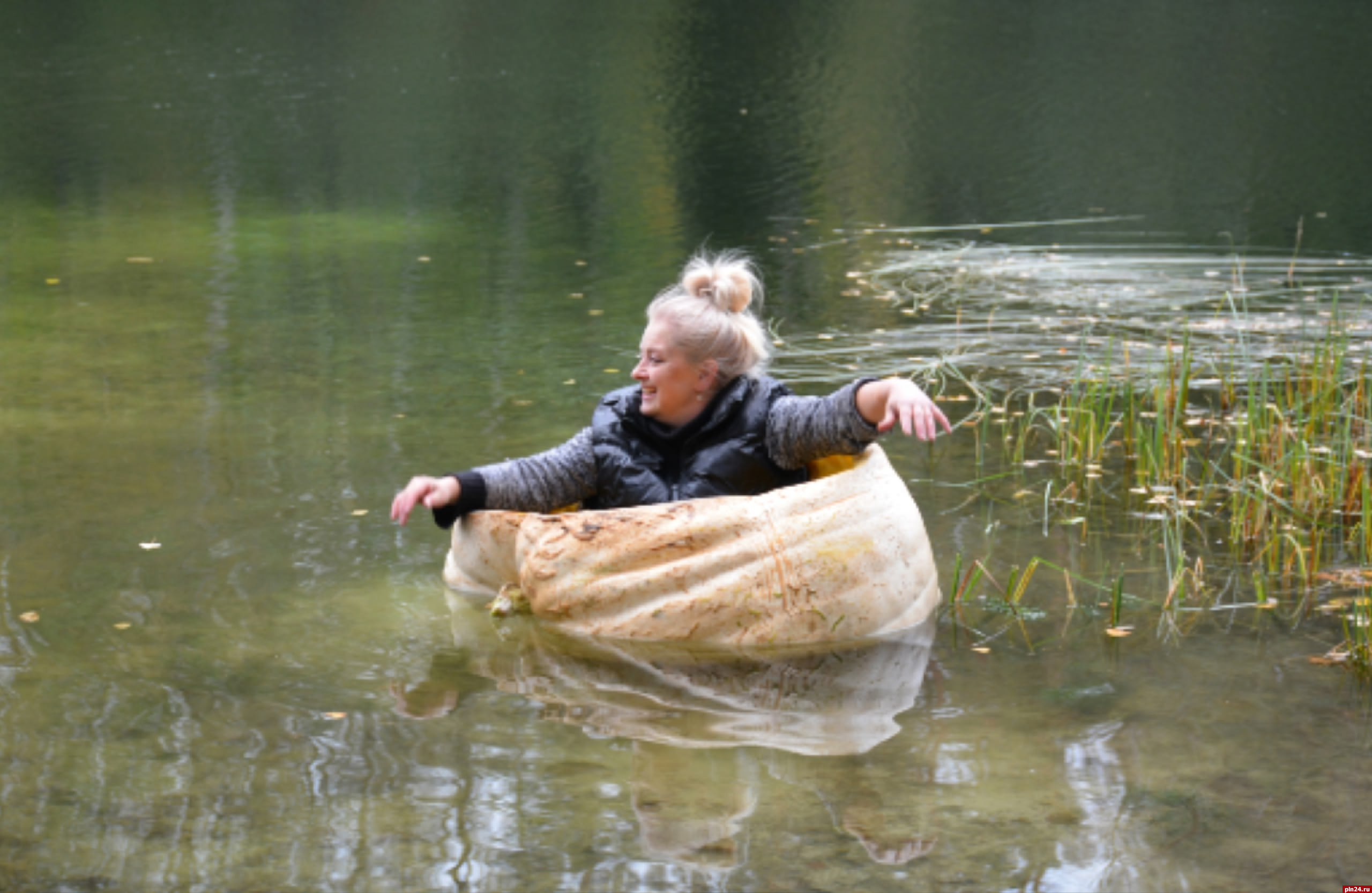 Год назад Юлия Богданова вырастила тыкву весом 226 килограммов на своём приусадебном участке в деревне Игомель Плюсского района и решила использовать ее, как лодку. Первый заплыв состоялся 5 октября 2024 года.