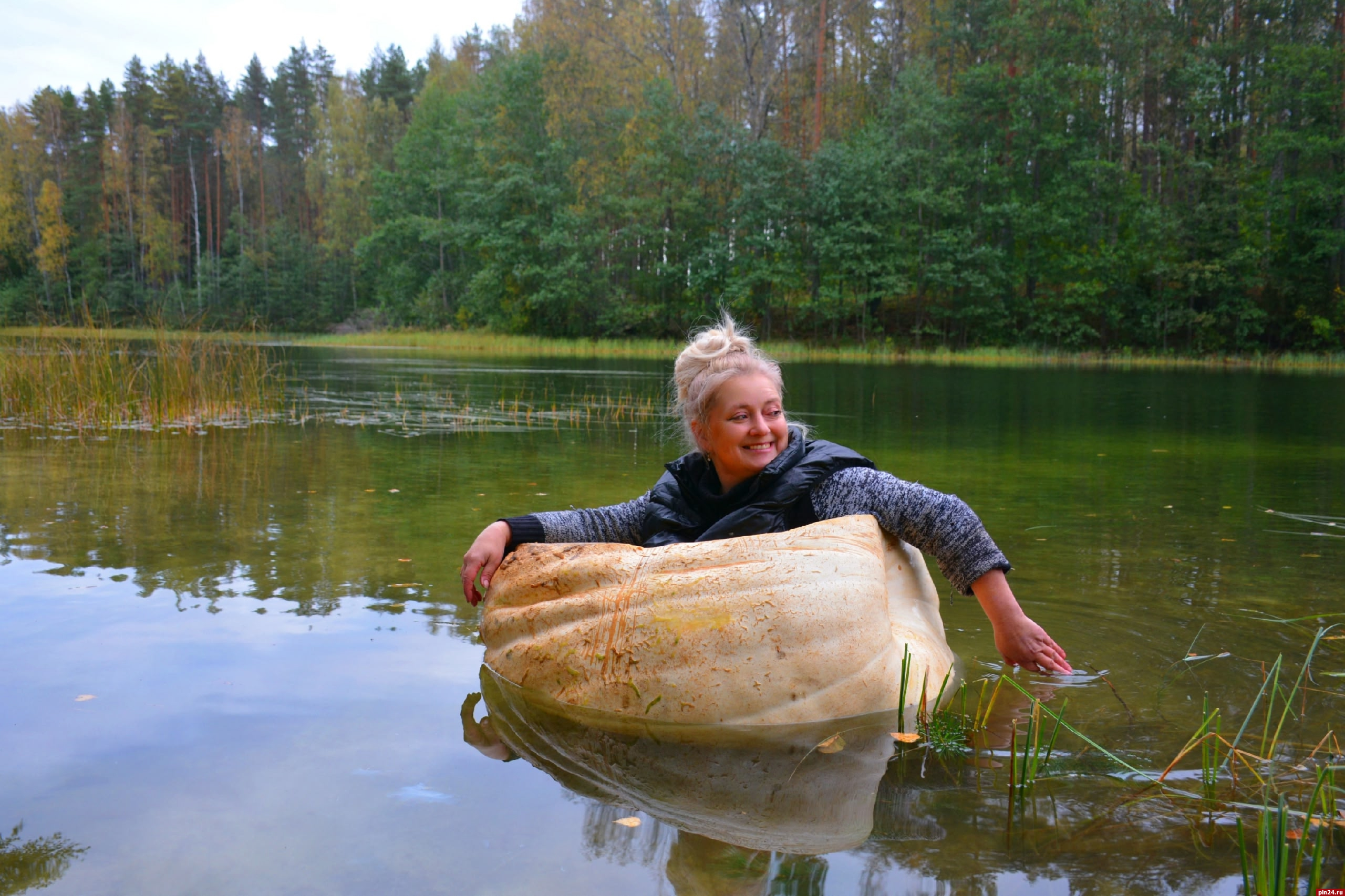 «Не карету я себе растила, а корабль. Сбылась мечта, тыквенный заплыв по псковской воде на озере Стречино состоялся!» - писала женщина и собиралась через год повторить своей необычный опыт.
