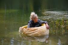 В Плюсском районе петербурженка Юлия Богданова повторила прошлогодний заплыв в тыкве по озеру Стречино, сообщается на странице женщины в соцсети «ВКонтакте».
