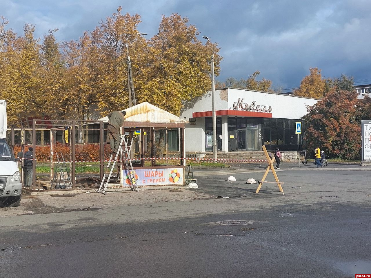 В Пскове на перекрестке улиц Розы Люксембург и Народной разобрали киоск, передаёт корреспондент Псковской Ленты Новостей.
