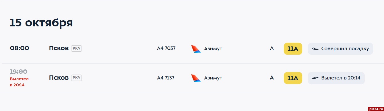 Вечерний авиарейс Москва - Псков вылетел из аэропорта «Внуково» в 20:14, следует из данных онлайн-табло аэропорта.