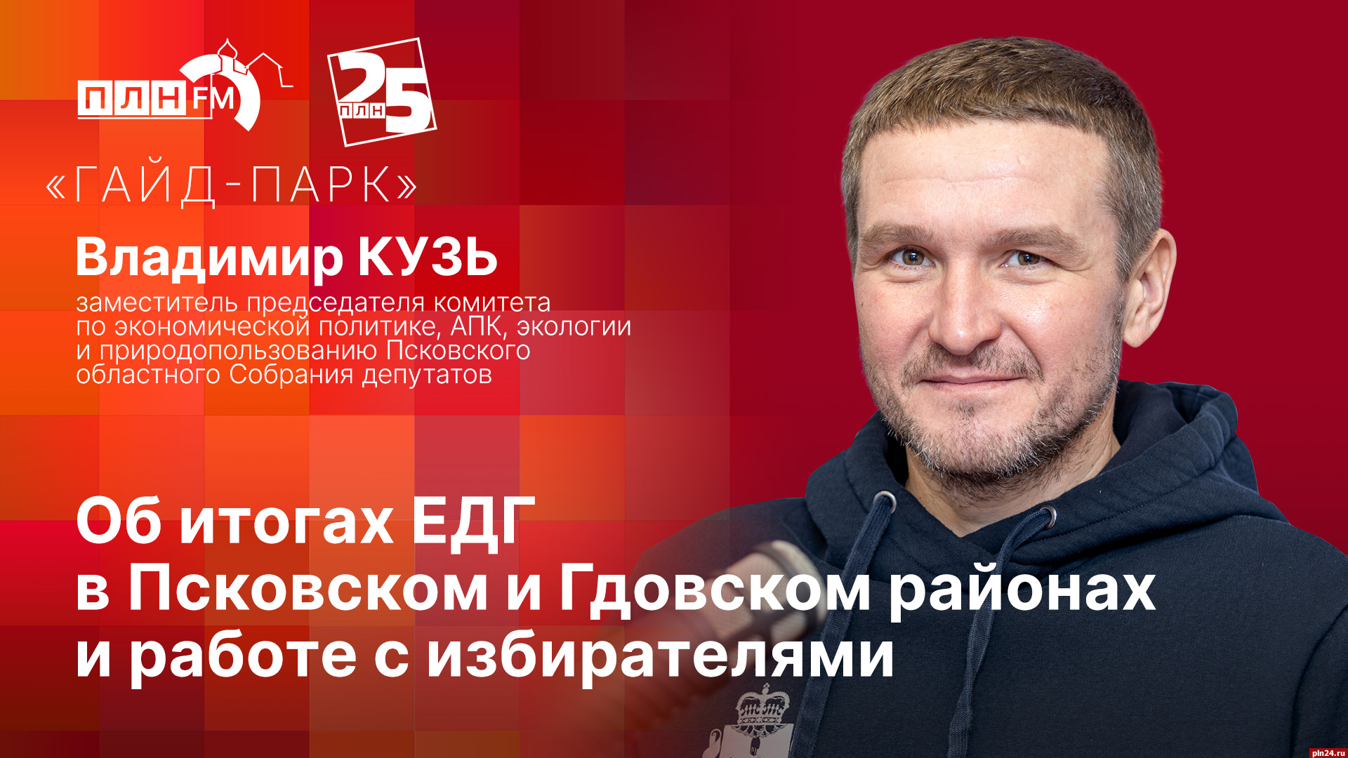 Гость студии — заместитель председателя комитета по экономической политике, АПК, экологии и природопользованию Псковского областного Собрания, депутат по одномандатному округу №7 Владимир Кузь.