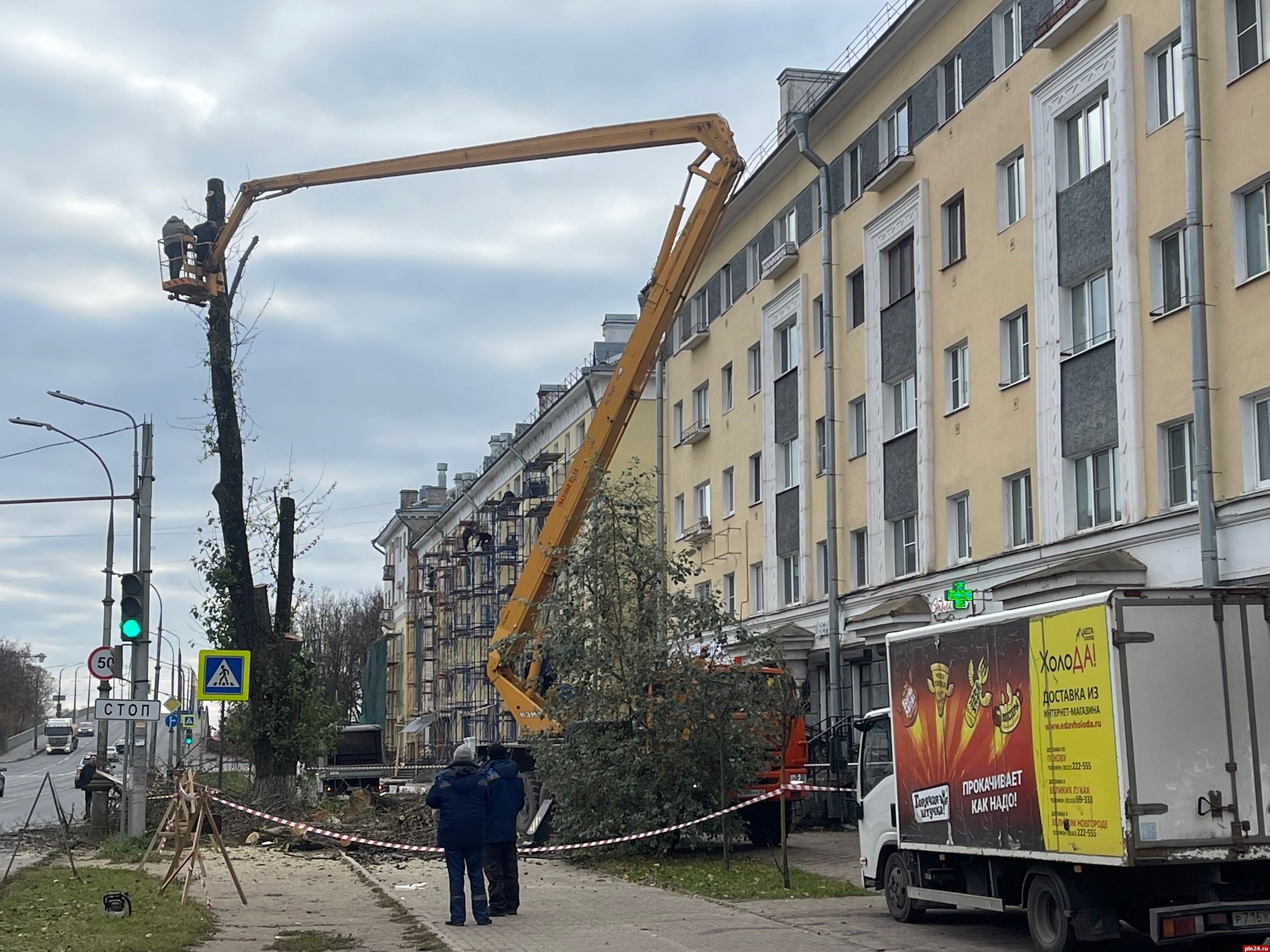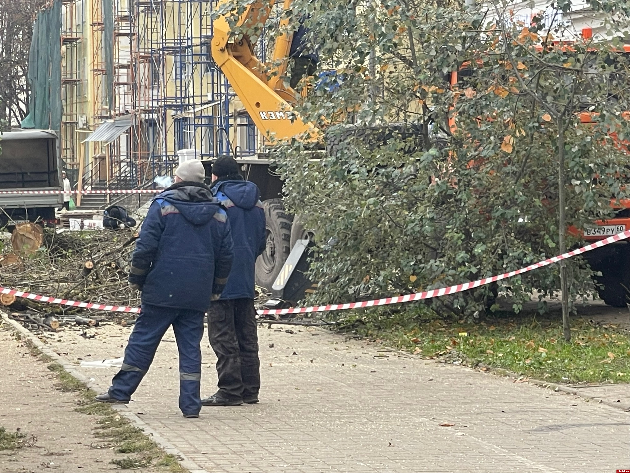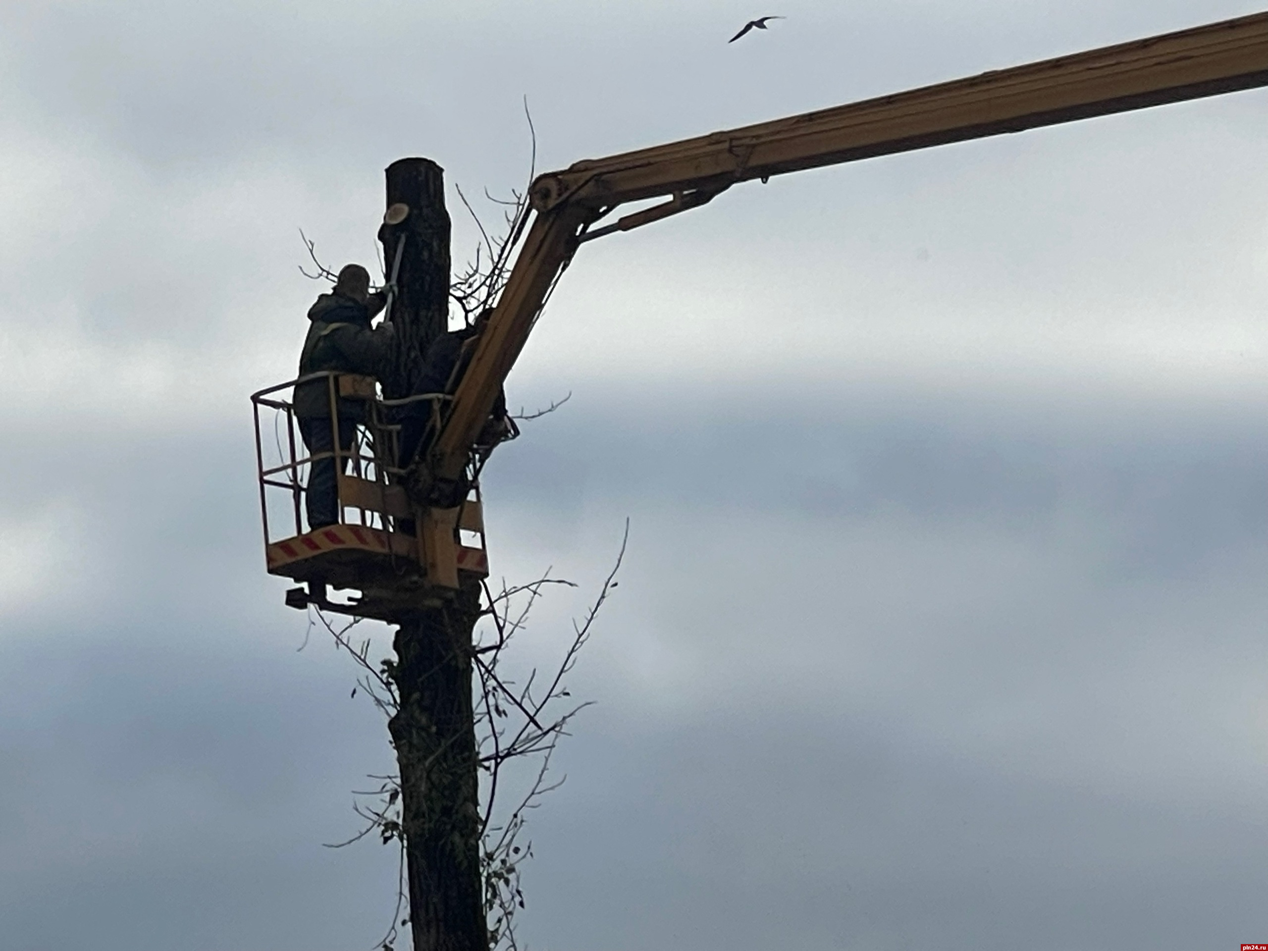 Деревья обрезают на Октябрьском проспекте в Пскове 22 сентября, сообщили Псковской Ленте Новостей очевидцы.