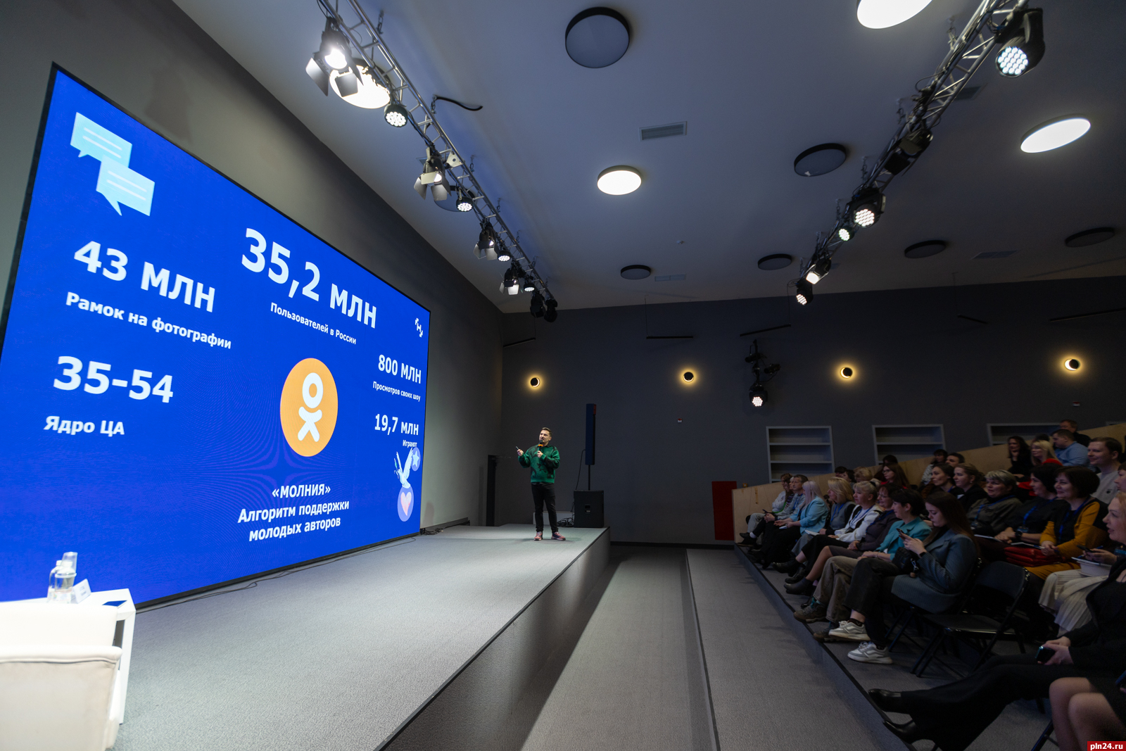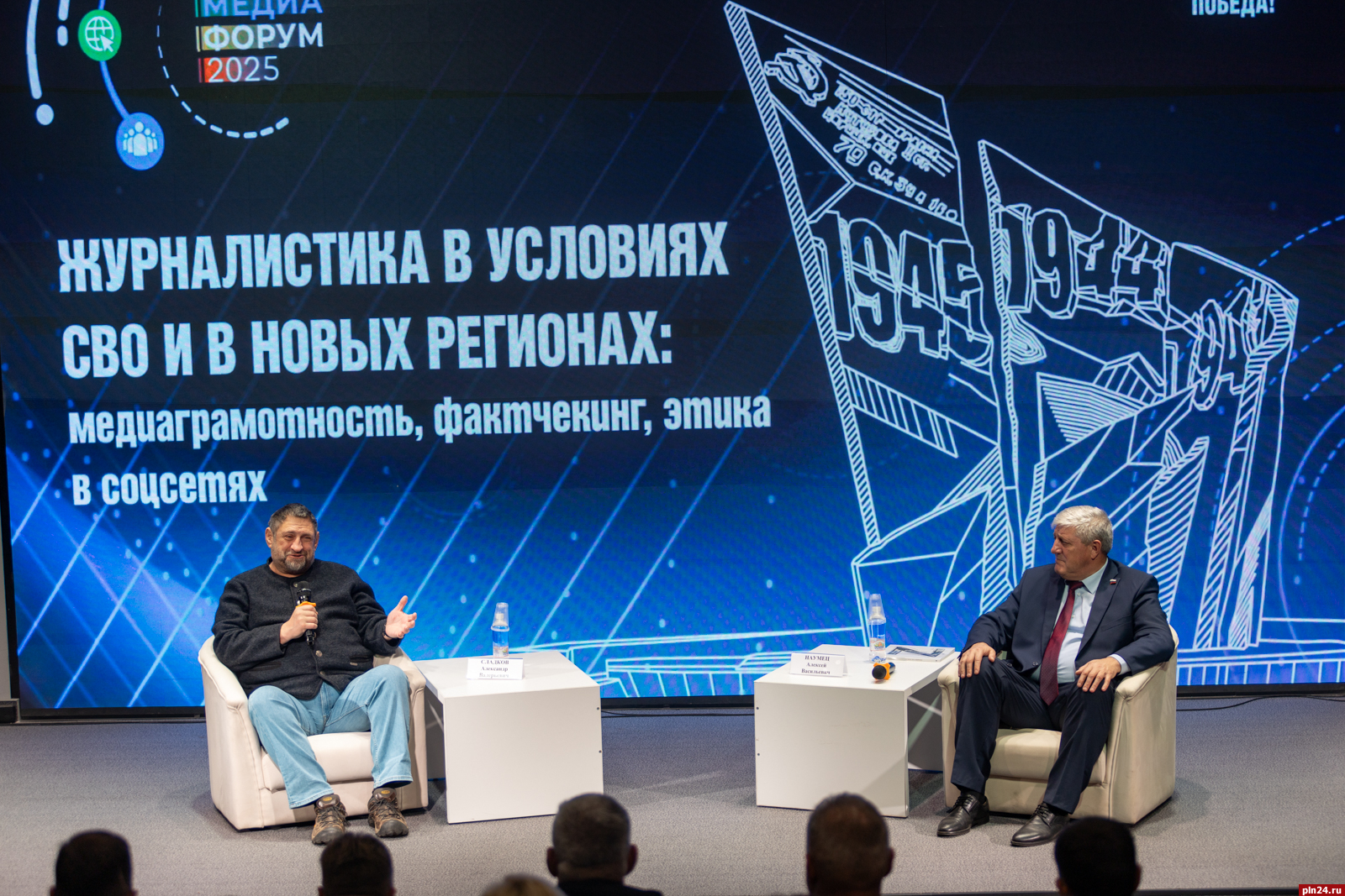 После торжественной церемонии открытия в актовом зале правительства Псковской области работа форума продолжилась в тематических секциях. Участники обсудили широкий круг вопросов: от журналистики в зоне СВО и в новых регионах до противодействия фейкам и информационной перегрузке. Отдельные площадки были посвящены тенденции переезда европейцев в Россию, работе в мессенджере МАХ и современному блогингу.