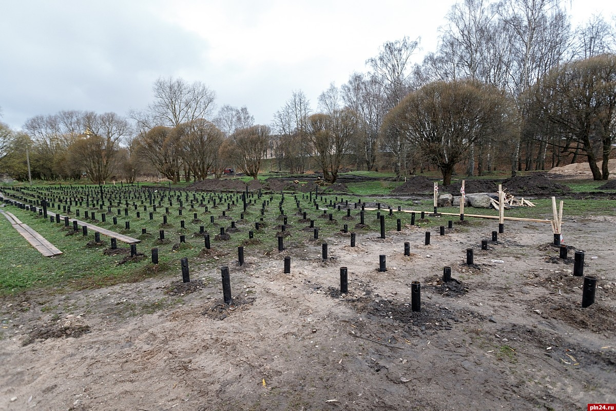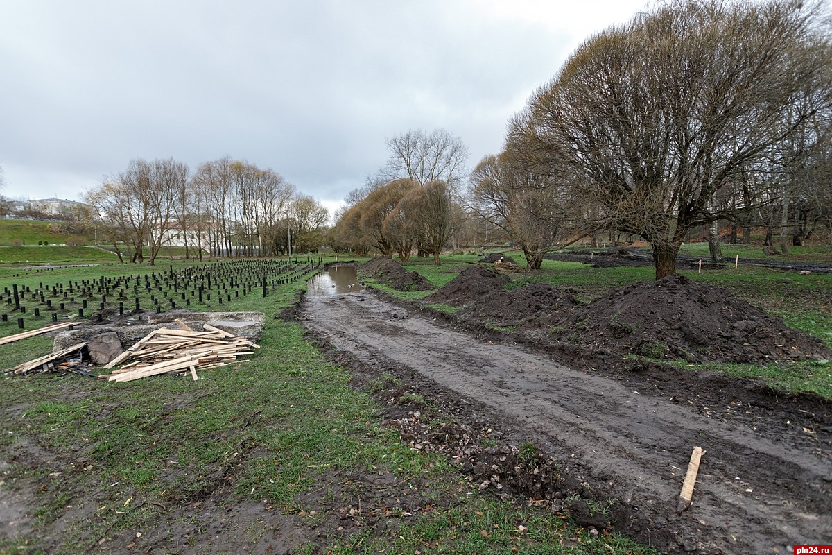 В это день псковичи внимательно наблюдали за строительством парка Строителей на берегу реки Псковы.