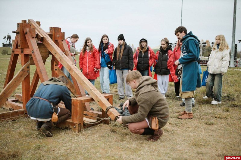 На территории мемориального комплекса «Князь Александр Невский с Дружиной» работали 18 интерактивных площадок. Школьники пробовали себя в фехтовании, стрельбе из лука и требушета, осваивали азы средневековой письменности и плетения кольчуги, делали брелоки из шишек и сургучные печати.