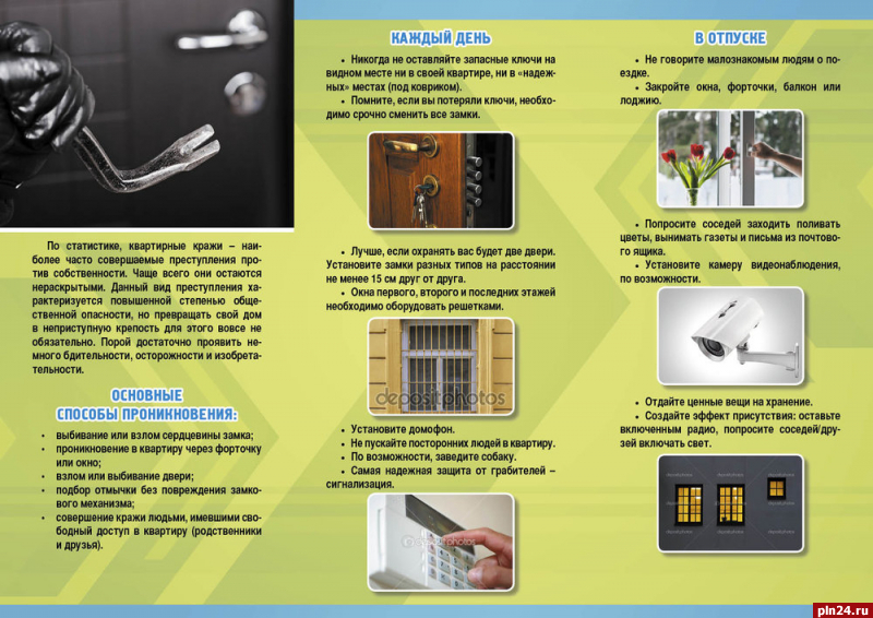 Во избежание неблагоприятных ситуаций, предупреждения преступлений каждый гражданин должен помнить, что при соблюдении определенных, элементарных правил он может оградить себя и своих близких от преступных посягательств. Как преступники вычисляют потенциальную жертву воровства и на что именно они обращают внимание при длительном отсутствии в жилище хозяев, сообщили в пресс-службе УМВД России по Псковской области.