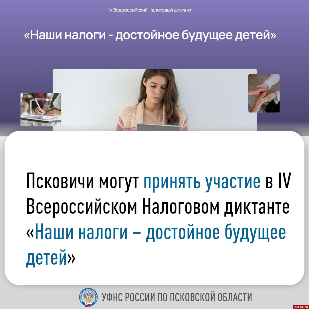 Федеральная налоговая служба совместно с «Российская академия народного хозяйства и государственной службы при Президенте РФ» (РАНХиГС) проводит IV Всероссийский Налоговый диктант «Наши налоги – достойное будущее детей» с 1 по 20 ноября. В нем могут принять участие все желающие, интересующиеся темой налогов из любой точки мира. Об этом Псковской Ленте Новостей сообщили в УФНС России по Псковской области.