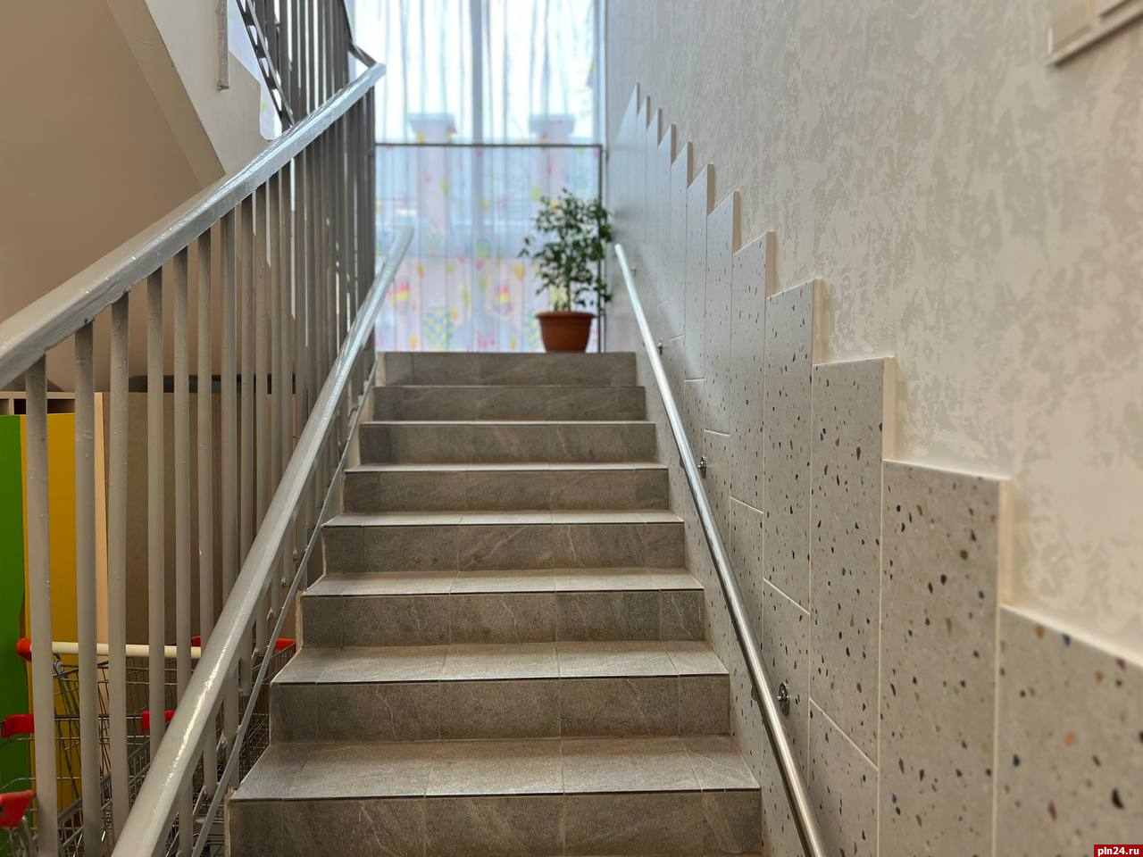 Здание 1987 года постройки впервые прошло капитальный ремонт – на эти цели выделили 64 млн рублей. Обновили все интерьеры, окна, двери, инженерные сети, лестницы и входные группы, установили новую мебель и оборудование. Особое внимание уделили сохранению уникальных росписей и витражей, которые придают детскому саду неповторимый облик. Обновленный детсад посещают почти 300 ребят.