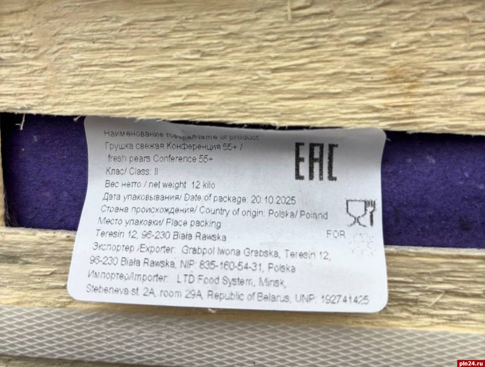 На складе временного хранения при осуществлении досмотра грузового отсека автомобиля была выявлена партия свежих груш общим весом 20 тонн. На коробках с фруктами содержались упаковочные этикетки с указанием страны происхождения – Польша. По факту выявленного нарушения возбуждено дело об административном правонарушении, а ненадлежащую продукцию уничтожили.